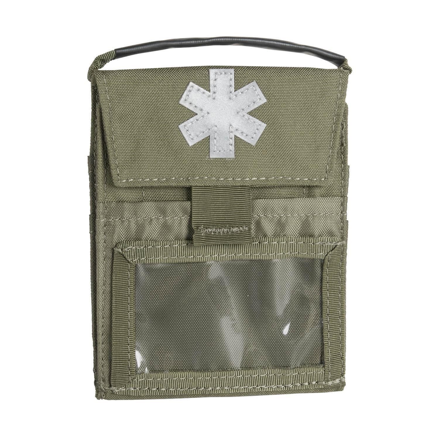 Piccola custodia piatta e leggera per kit di pronto soccorso del marchio HELIKON-TEX, che può essere riposta nelle tasche dei pantaloni. La custodia può contenere senza problemi l'attrezzatura medica di base come guanti, mascherine, cerotti o forbici.