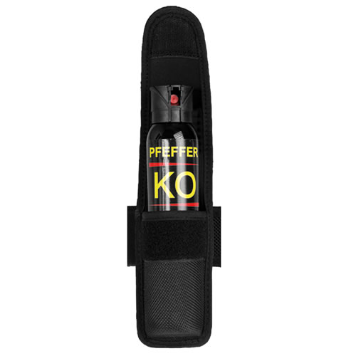 Custodia da cintura per spray al peperoncino o lacrimogeno da 100 ml. Chiusura con velcro. Robusta e di ottima qualità. Passante per cintura larga. Dimensioni: 17,5 x 6,5 x 4 cm. Materiale: 100% nylon, interno: schiuma EVA.