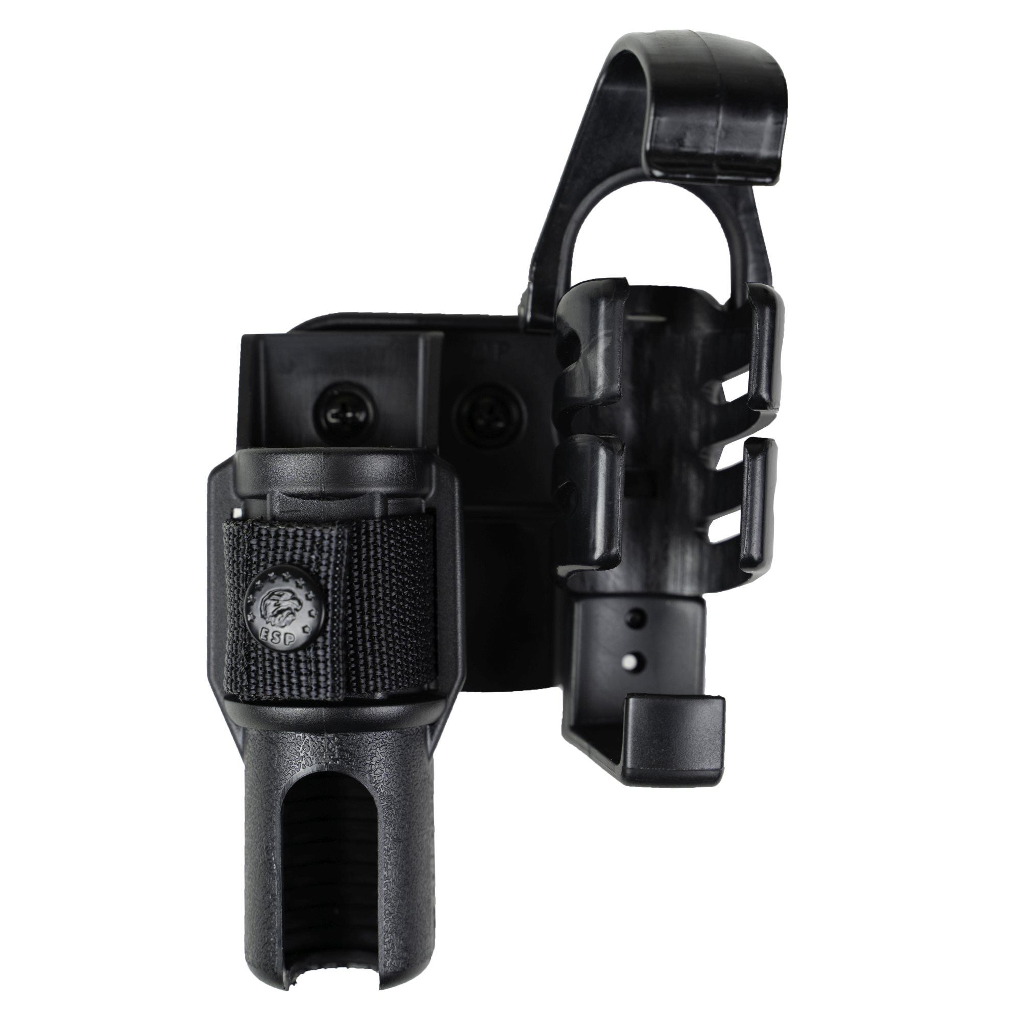 Il doppio fodero girevole in plastica è composto dal fodero LH-04 (per torcia) e dal fodero SHT-04 (per spray) collegati tramite un adattatore speciale. Il vantaggio di questa soluzione è il risparmio di spazio sulla cintura. La posizione costante della torcia e dello spray migliora l'orientamento sulla cintura nella scelta del mezzo appropriato. Entrambi i fondine ruotano insieme rispetto alla cintura e la loro posizione reciproca rimane invariata.