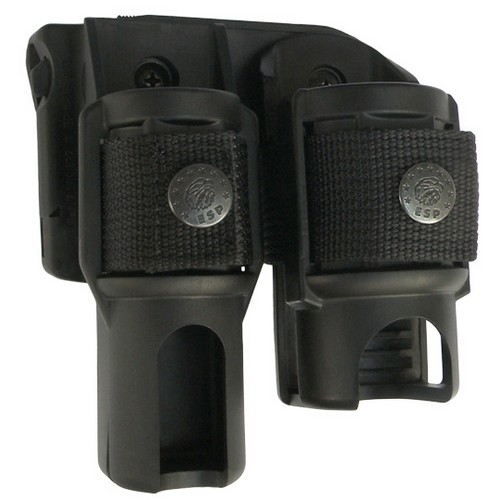 Il doppio fondina girevole in plastica è composto da fondine BH-04 (per manganello) e fondina SH-04 (per spray) collegate tramite un adattatore speciale. Il vantaggio di questa soluzione è il risparmio di spazio sulla cintura. La posizione costante del manganello e dello spray migliora l'orientamento sulla cintura nella scelta dello strumento appropriato. Entrambi i fondine ruotano insieme rispetto alla cintura, mantenendo la loro posizione reciproca.