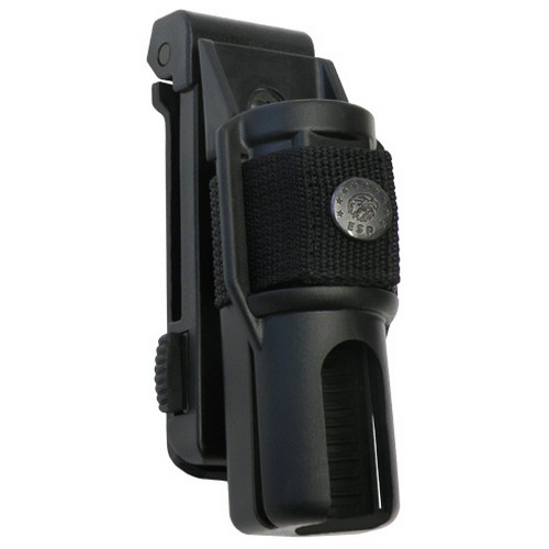 Il fodero girevole in plastica è destinato all'uso professionale. Consente di estrarre rapidamente la torcia.La speciale fibbia di fissaggio brevettata (EP 1604587, US Pat.: 7,380,692, RU Pat.: 2352233) consente di agganciare rapidamente la custodia alla cintura con una sola mano, senza doverla slacciare. La torcia può essere ruotata rispetto alla cintura di 360 gradi in 16 posizioni bloccabili.