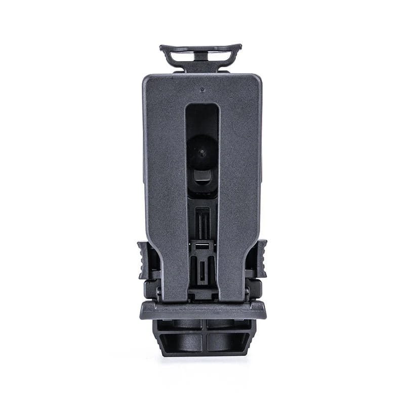 Fondina a sgancio rapido per il trasporto comodo della torcia tattica. La fondina è dotata di un meccanismo rotante con un totale di 16 posizioni di fissaggio, che consente di orientare la luce senza dover tenere la torcia in mano, se necessario. La fondina è realizzata in polimero leggero ma molto resistente, adatto per un uso intensivo quotidiano. La custodia è compatibile con cinture fino a 55 mm di larghezza e può essere utilizzata anche su piattaforme modulari standard MOLLE/PALS. Il meccanismo di chiusura migliorato garantisce un'estrazione rapida e allo stesso tempo impedisce il rilascio accidentale durante la corsa o altre attività dinamiche.