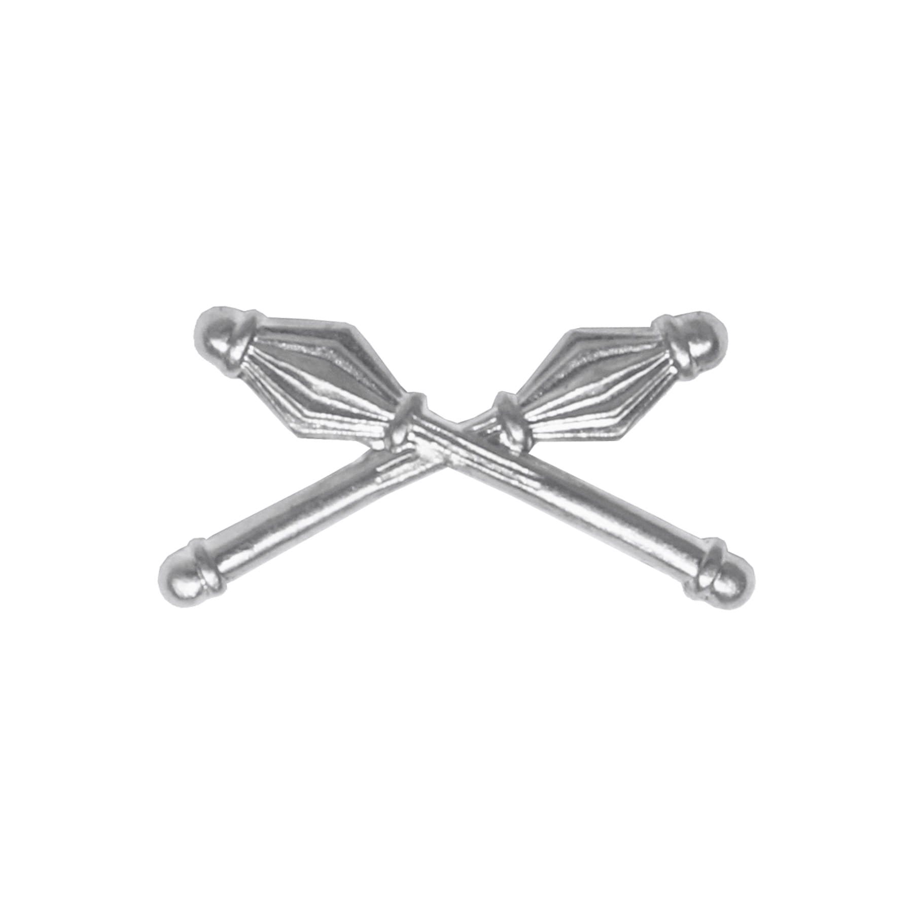 Distintivo da revers con motivo di due mazze dorate incrociate. Il distintivo si fissa tramite due perni posteriori. Originale dell'equipaggiamento dell'Esercito popolare cecoslovacco.