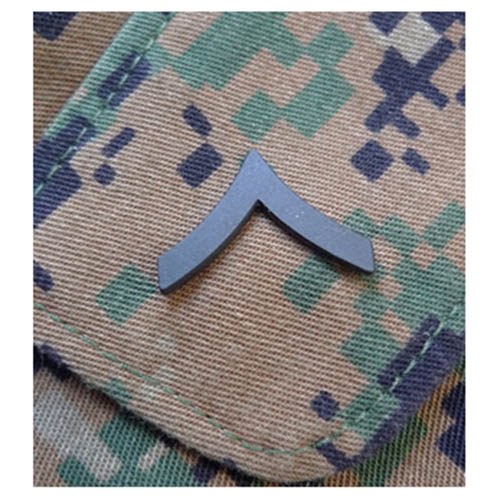 Coppia di distintivi di grado in metallo - Private First Class. Finitura nera opaca. Lavorazione accurata, prodotto negli Stati Uniti. Prezzo per coppia.