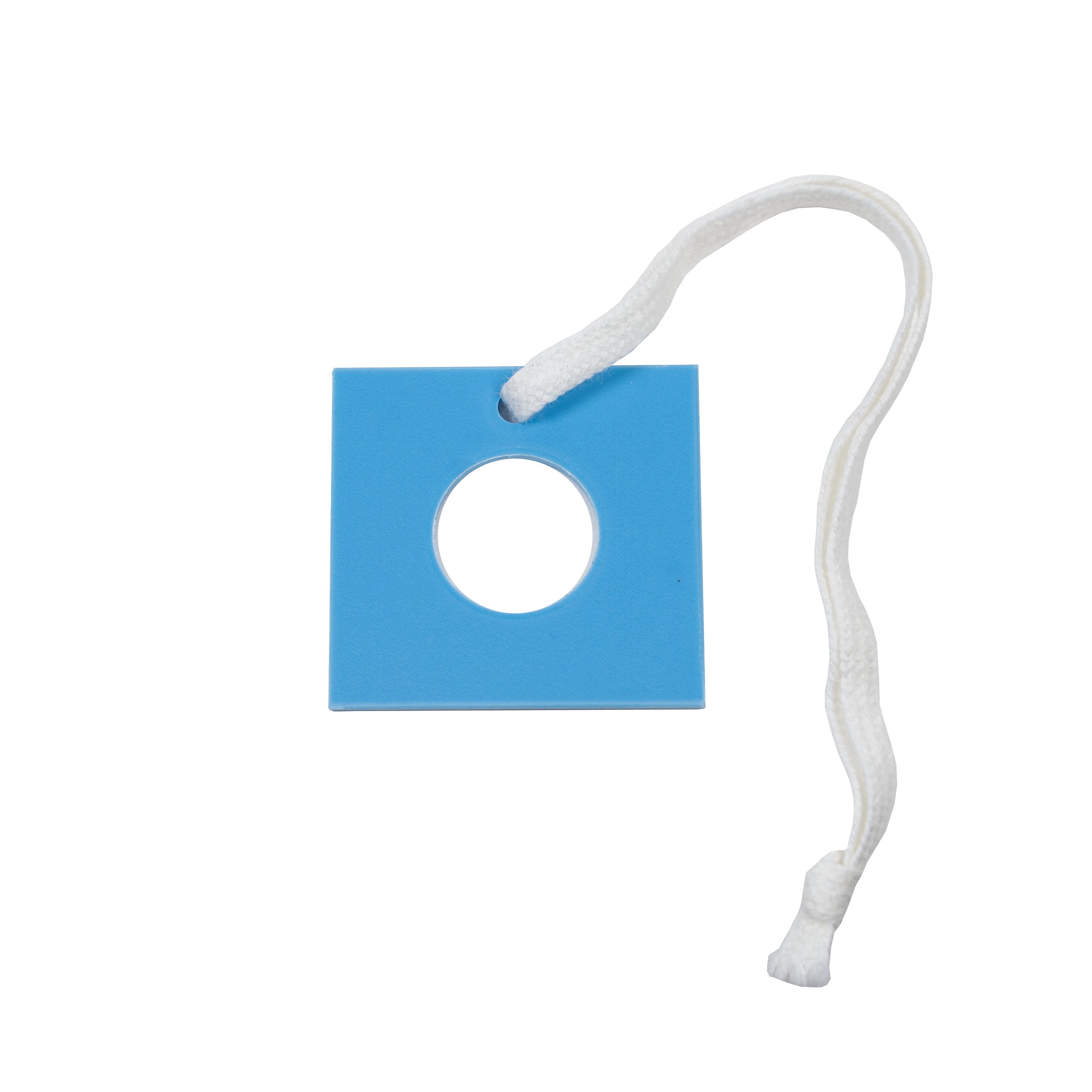 Etichetta di classificazione blu a forma di quadrato con foro. Insieme agli altri contrassegni, può essere utilizzato, ad esempio, in vari giochi di gruppo in cui è necessario distinguere le singole squadre con colori diversi. Adatto anche come etichetta da applicare al prodotto (ad esempio, l'anno di produzione di marmellate o composte, senza limiti alla fantasia). Prezzo per confezione/100 pezzi.