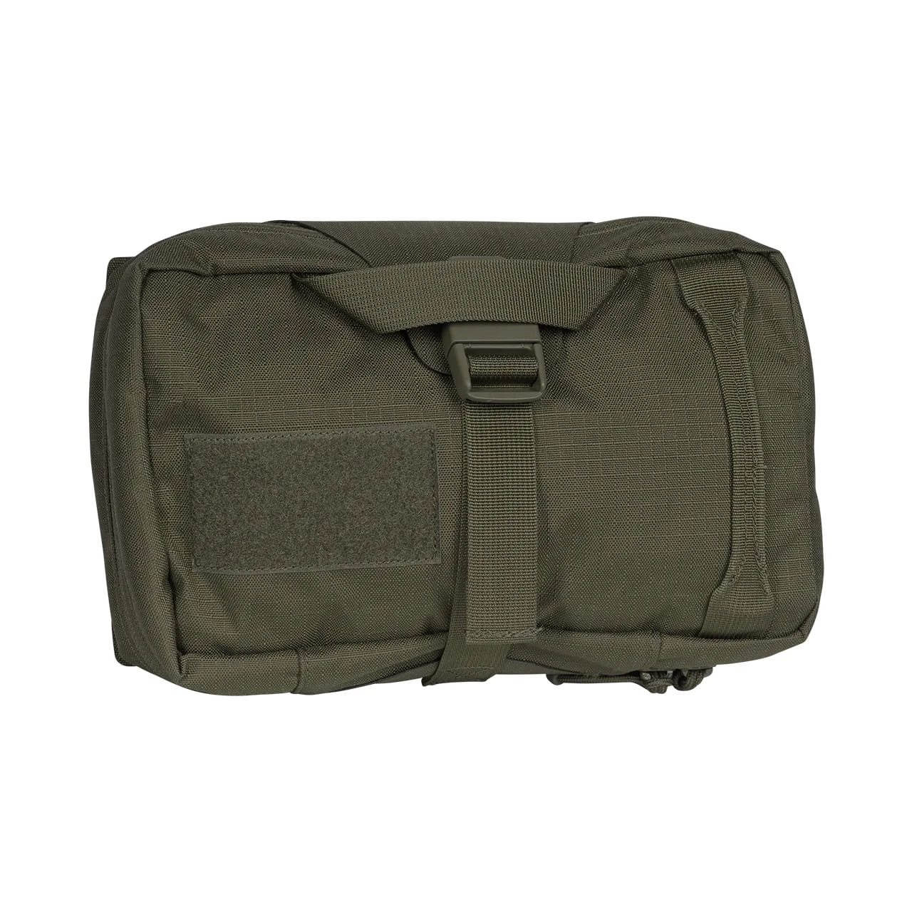 Grande kit di pronto soccorso progettato per il trasporto di attrezzature mediche con la possibilità di "staccarlo" rapidamente dalla confezione separata, che grazie alla compatibilità MOLLE/PALS può essere fissato a tutta una serie di attrezzature compatibili. Il kit di pronto soccorso contiene una serie di elastici e guide progettate per il fissaggio dei cordini. All'esterno della cassetta di pronto soccorso è presente un pannello in velcro per le vostre toppe VELCRO e una maniglia per una rapida presa.