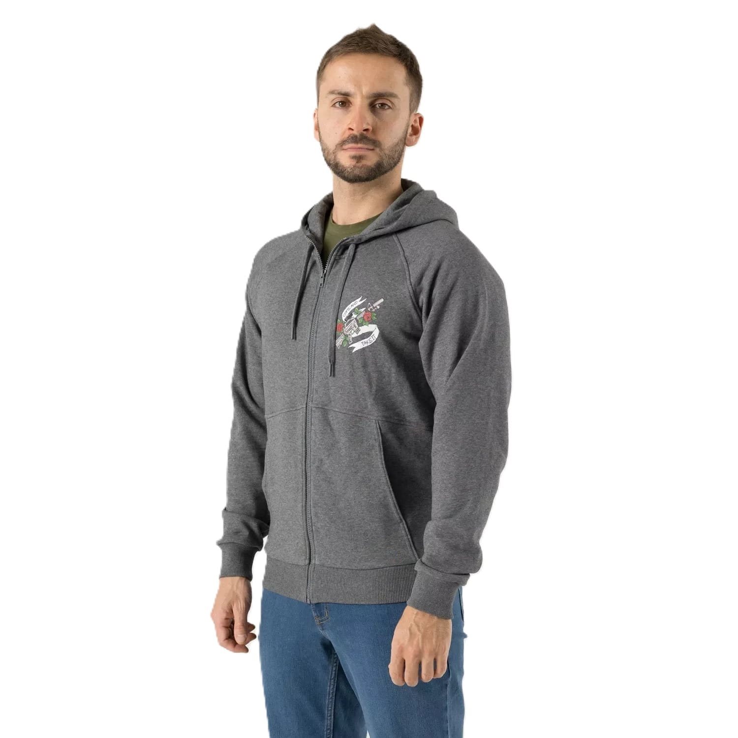 Felpa COME AND TAKE IT con zip e cappuccio GRIGIA