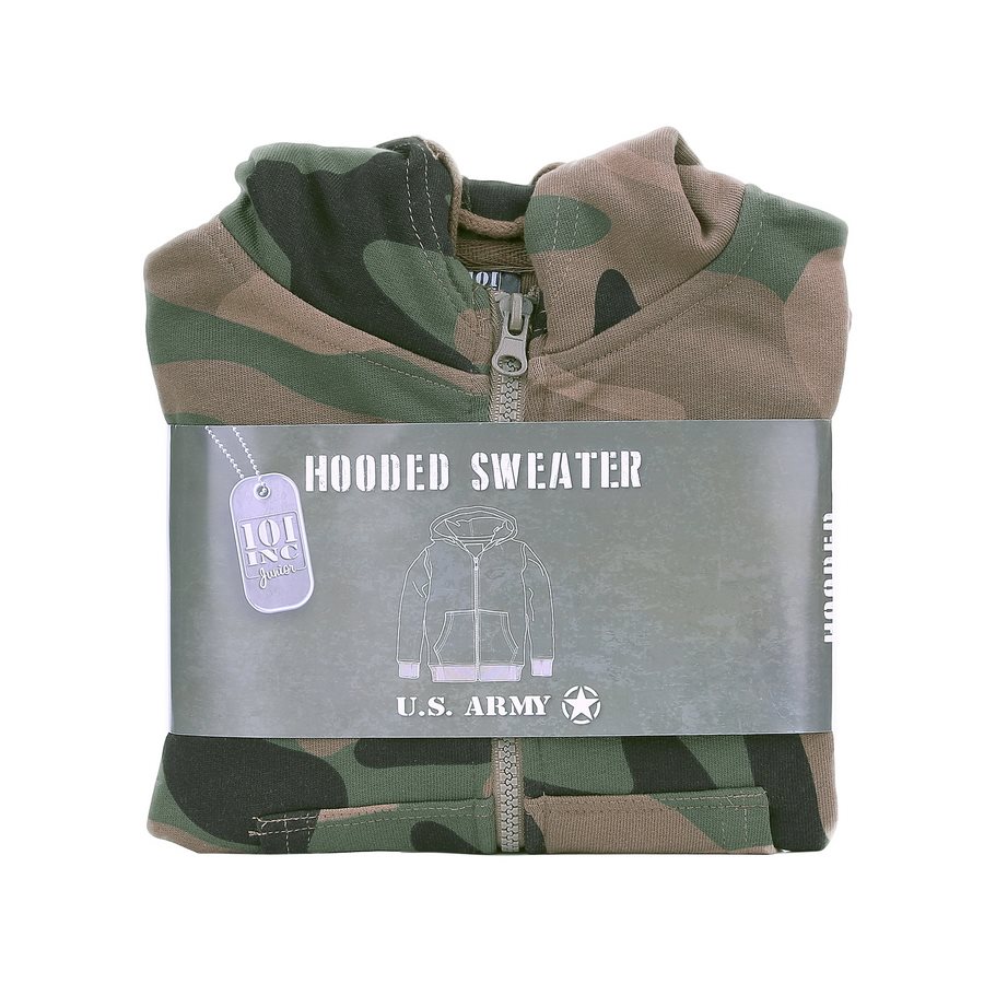 Felpa leggera con la popolare stampa WOODLAND, ideale per l'uso quotidiano. Si chiude con una lunga cerniera centrale, ha due tasche per le mani e un ampio cappuccio. Le estremità delle maniche e l'orlo inferiore sono rifiniti con un bordo elastico.