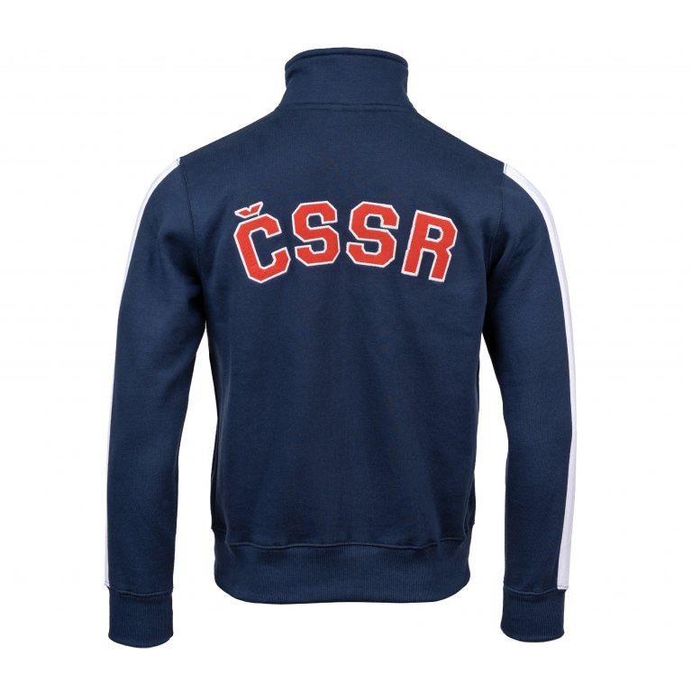 Felpa di alta qualità con zip, tasche e ricamo ČSSR, che conferisce al vostro look un tocco nostalgico. La felpa è di colore blu con logo ricamato sul cuore e sulla schiena.
