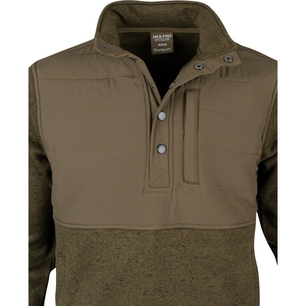 Felpa calda con collo alto e possibilità di apertura per una rapida ventilazione del calore in eccesso. La felpa è realizzata in poliestere molto piacevole al tatto, mentre la parte frontale è dotata di un'imbottitura extra per un maggiore comfort termico. La felpa è dotata di cinque bottoni automatici per la chiusura a tre quarti. Le tasche per le mani hanno aperture senza chiusura. Per riporre piccoli oggetti di valore o documenti è possibile utilizzare le tasche sul petto chiudibili con cerniera.