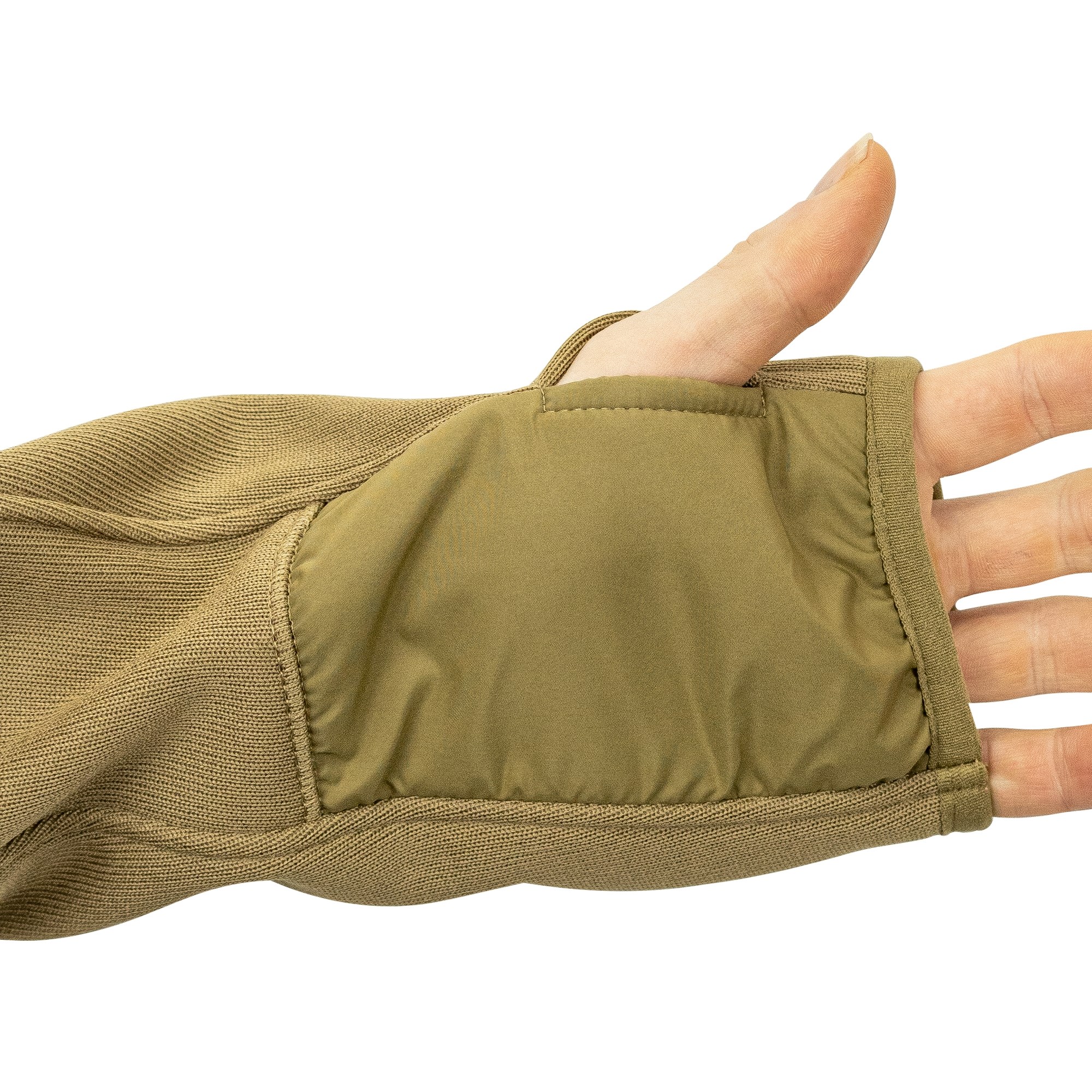 La felpa è dotata di due tasche per le mani che si chiudono con una cerniera coperta da una patta. Sulle braccia sono presenti due pannelli in VELCRO che possono essere utilizzati per applicare le vostre toppe in velcro. Il cappuccio della felpa è anatomico e può essere regolato in base alla taglia tramite un cordoncino. I polsini delle maniche e l'orlo inferiore della felpa sono dotati di elastico. Nella zona del polso è presente anche un'apertura per infilare il pollice.