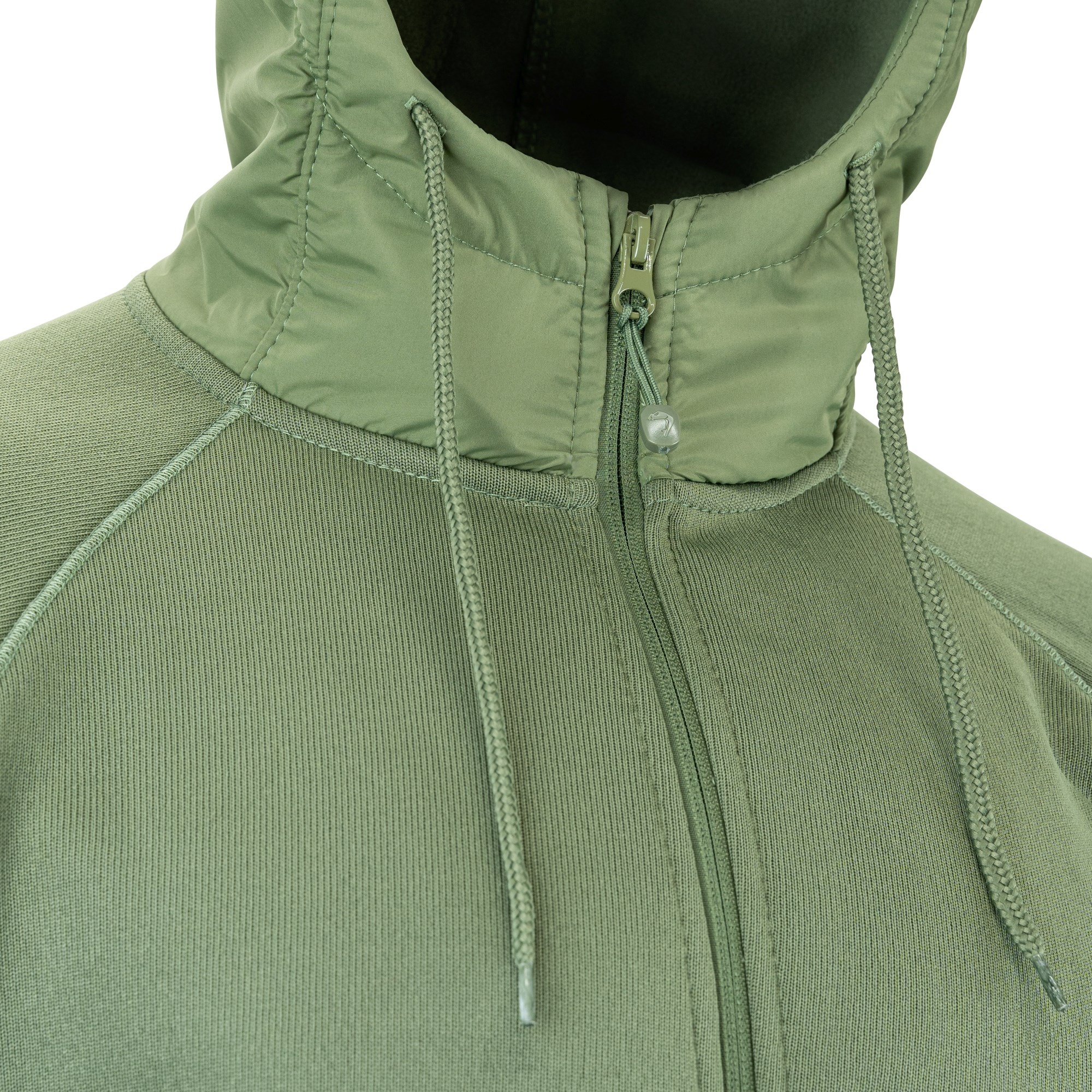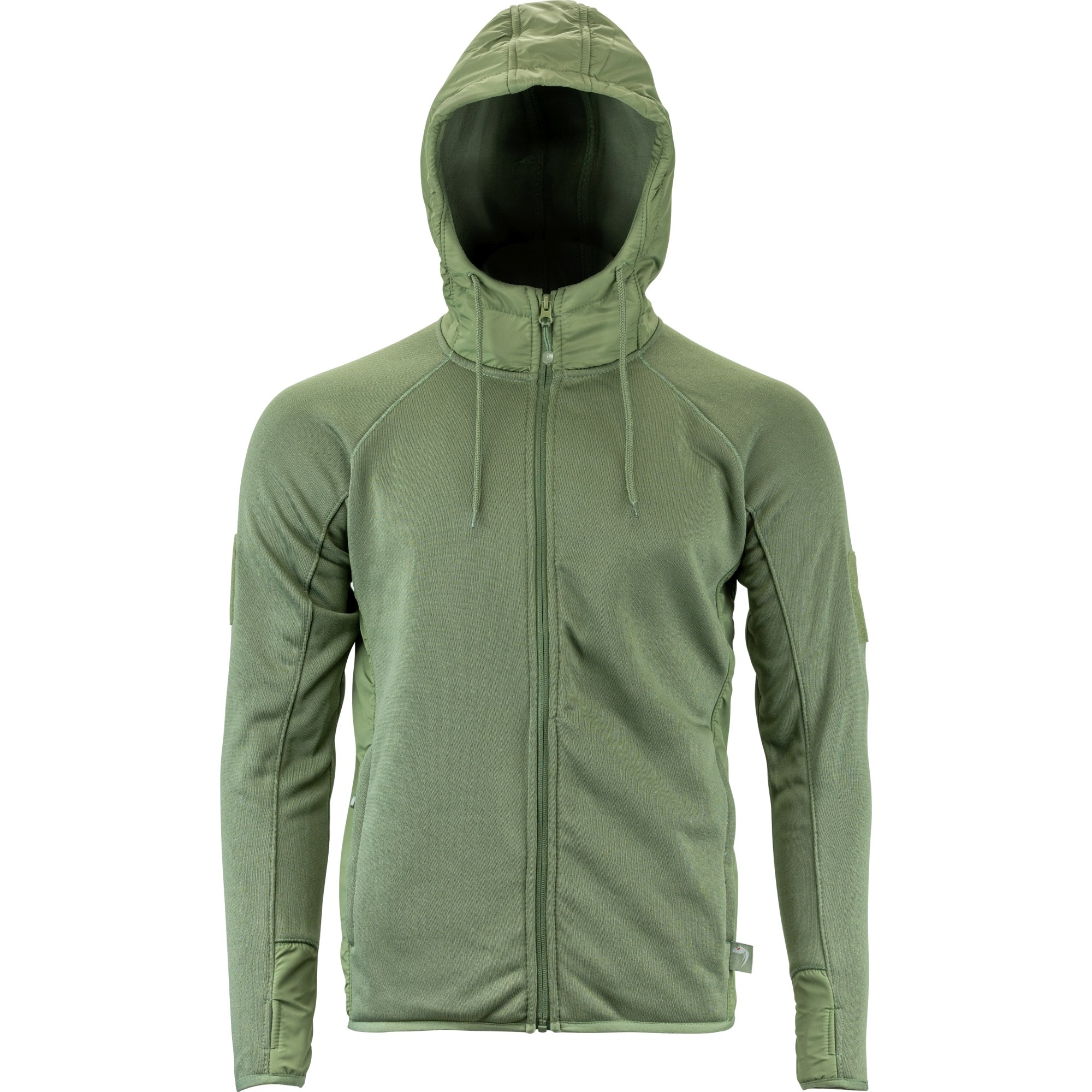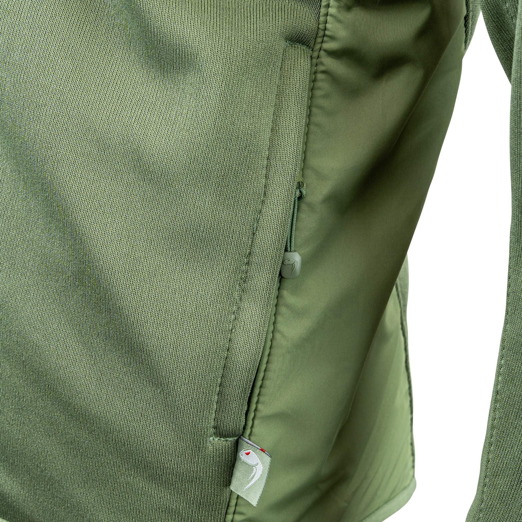 La felpa è dotata di due tasche per le mani che si chiudono con una cerniera coperta da una patta. Sulle braccia sono presenti due pannelli in VELCRO che possono essere utilizzati per applicare le vostre toppe in velcro. Il cappuccio della felpa è anatomico e può essere regolato in base alla taglia tramite un cordoncino. I polsini delle maniche e l'orlo inferiore della felpa sono dotati di elastico. Nella zona del polso è presente anche un'apertura per infilare il pollice.
