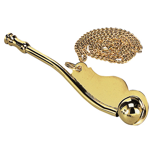 Fischietto tradizionale da marinaio (da nostromo) in versione dorata, con catena inclusa.