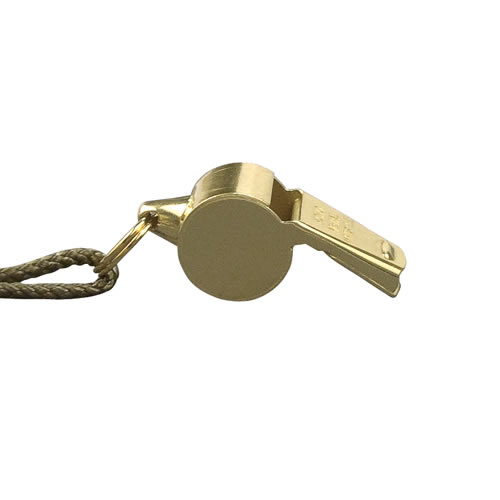 Fischietto metallico della polizia, nichelato con finitura in ottone. Cordino incluso.