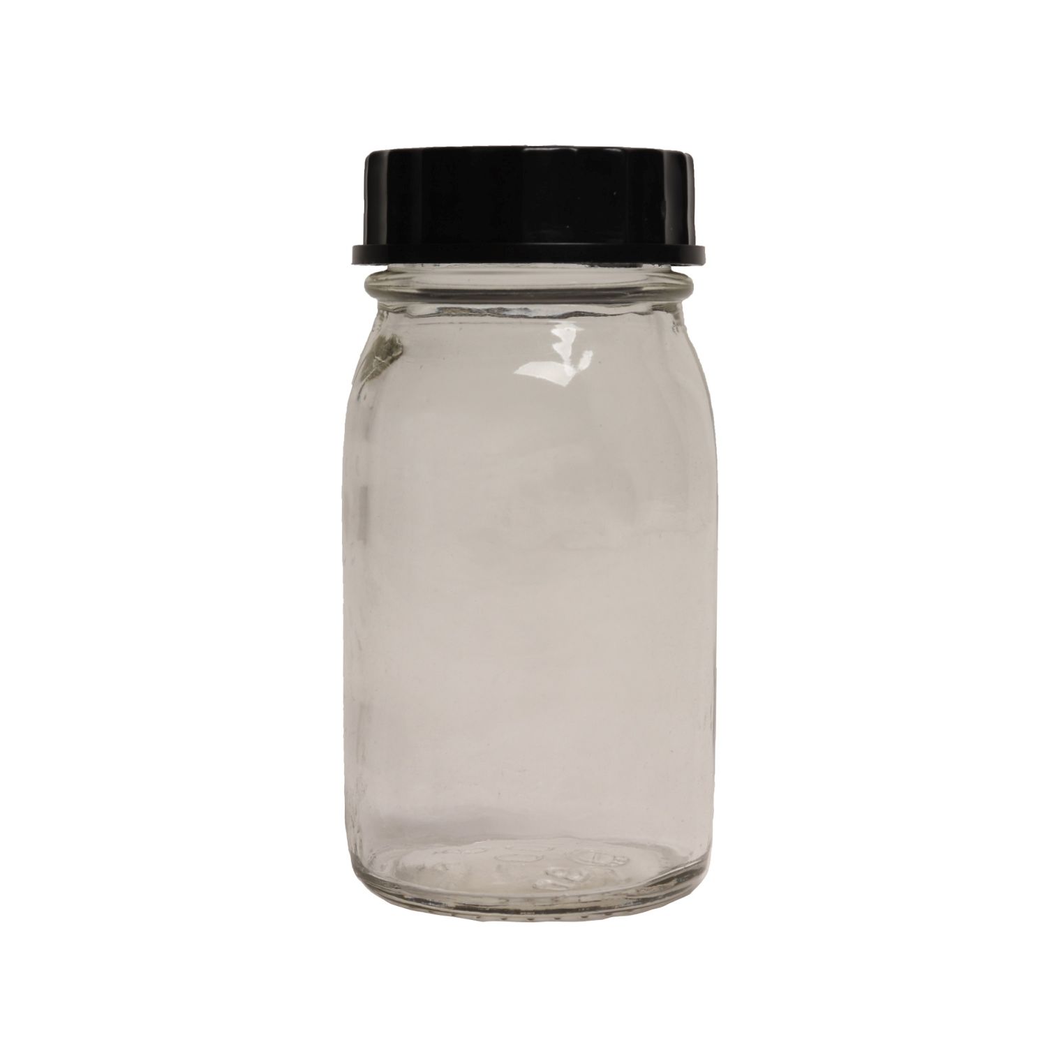 Flacone di vetro a collo largo da 200 ml con tappo di plastica nero