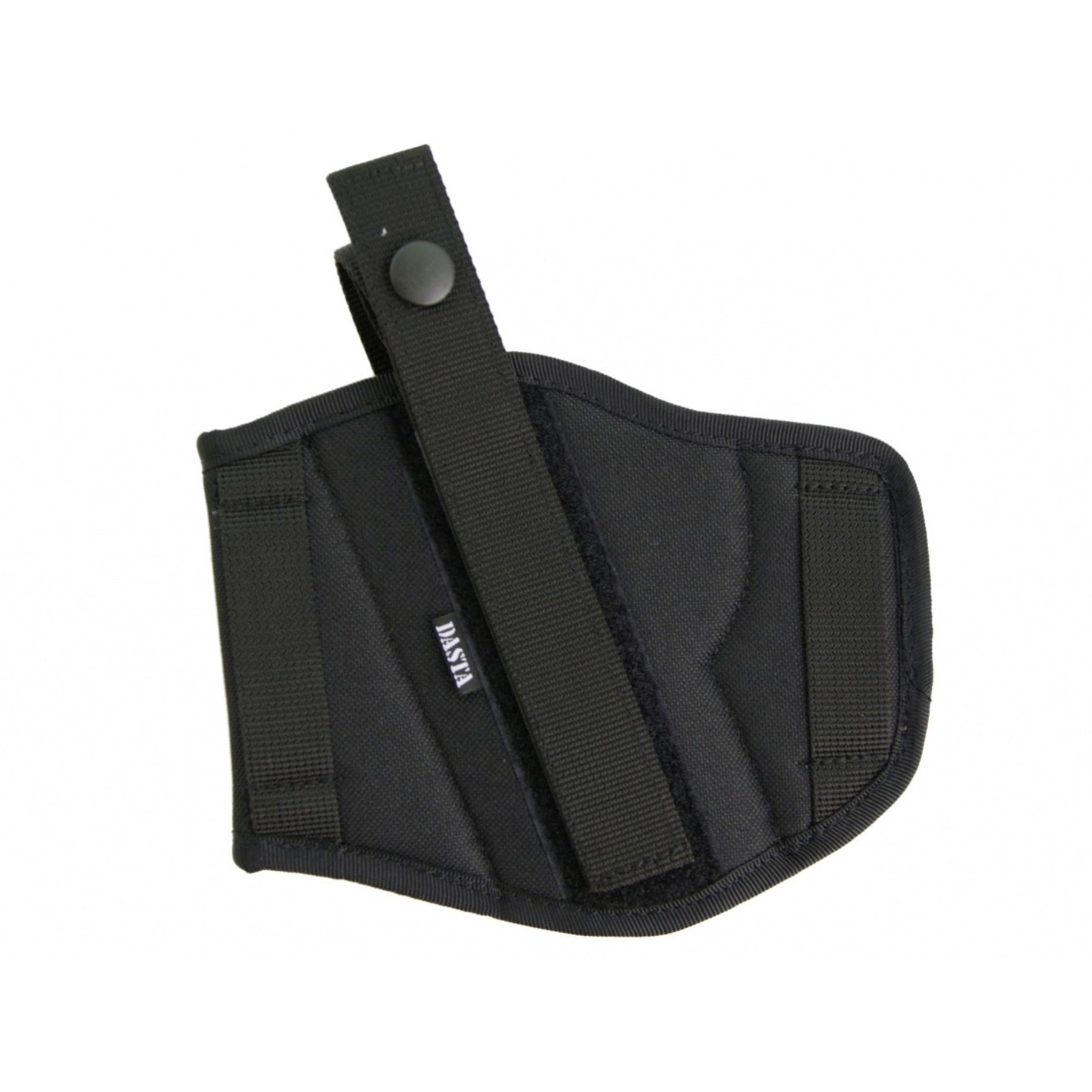 Fondina esterna da cintura del marchio DASTA. Progettata come reversibile (regolabile) per destrimani e mancini. Può essere utilizzata per il porto occulto o visibile di armi da fuoco corte. La fondina è fissata alla cintura tramite una coppia di passanti da circa 6 cm di larghezza. Per fissare l'arma nella fondina si utilizza una cintura in due parti con bottone a pressione. La cintura può essere regolata in lunghezza e larghezza tramite velcro in base all'arma specifica o alle preferenze dell'utente. Una cintura regolata correttamente consente di slacciarla rapidamente con il pollice della mano che spara, mantenendo la corretta impugnatura dell'arma. La fondina è realizzata in nylon con fodera in morbido pile per evitare graffi alla superficie dell'arma.