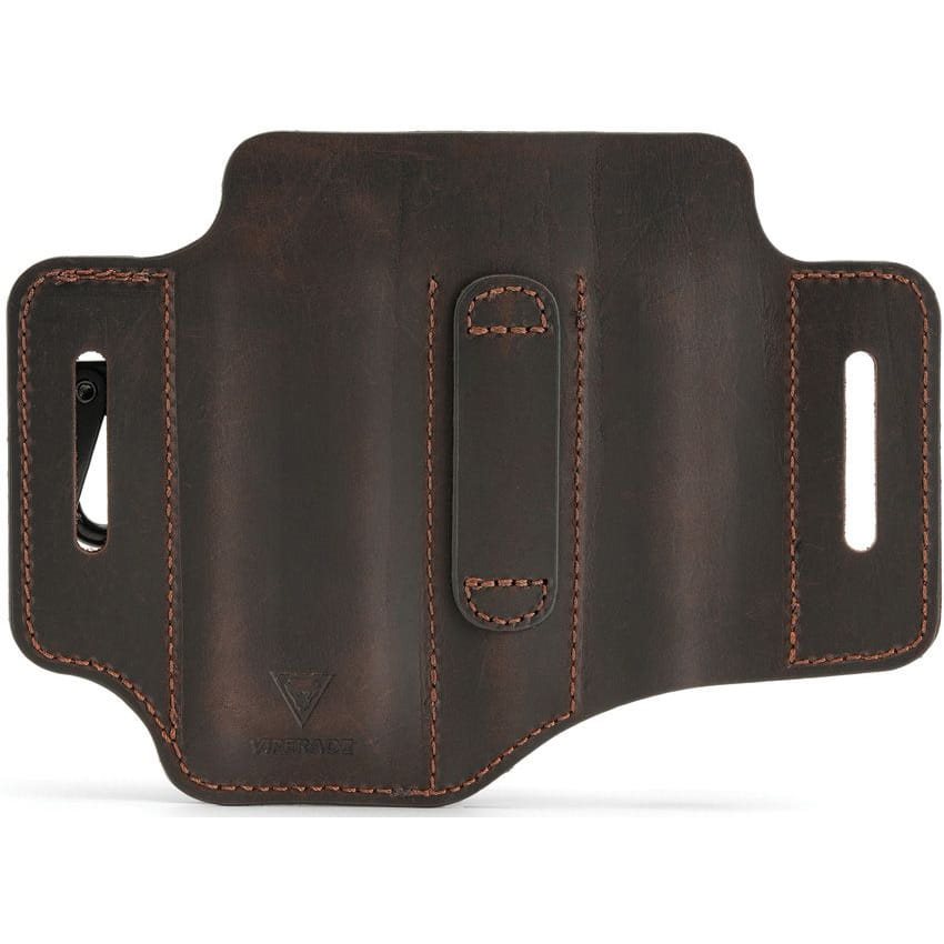 Pratico fodero da cintura progettato per il trasporto di multiutensili, penne tattiche, torce elettriche, ecc. Lo scomparto per la torcia non ha il fondo, quindi non vi è alcun problema nemmeno con torce più grandi. Al contrario, lo scomparto per la penna ha il fondo chiuso e può contenere strumenti di scrittura fino a 9,8 cm di lunghezza. Lo scomparto principale per il multiutensile è dotato di un'apertura inferiore per facilitare l'estrazione degli attrezzi dalla custodia. La clip metallica può essere utilizzata, ad esempio, per le chiavi. La custodia è adatta per cinture fino a 4 cm. Per la produzione della custodia è stata utilizzata pelle morbida e resistente.