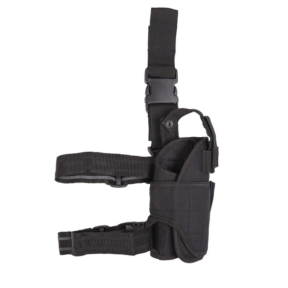 Fondina tattica per pistola da coscia destra, in colore nero.