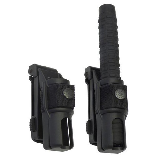 La fondina girevole in plastica è destinata all'uso professionale. Rappresenta una variante più semplice ed economica della fondina di servizio SH-121. Questo modello con fibbia a sgancio rapido consente di agganciarla rapidamente alla cintura con una sola mano, senza doverla slacciare. Il manganello può essere ruotato rispetto alla cintura di 360 gradi in 16 posizioni bloccabili. Tuttavia, la distanza tra la cintura e il manganello è minore quando si utilizza questo tipo di fibbia. Può anche essere fissato al sistema di trasporto M.O.L.L.E.