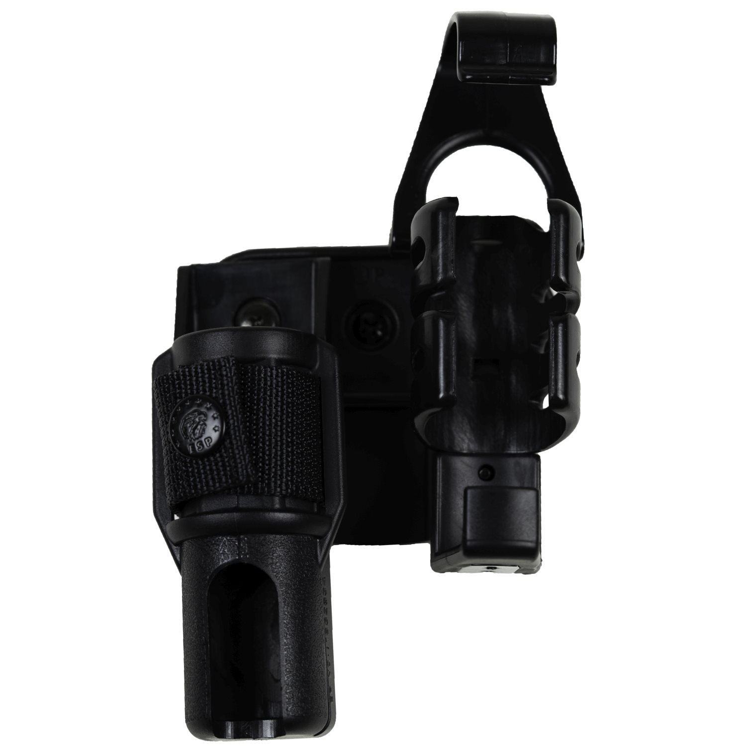 La doppia fondina girevole in plastica è composta dalla fondina BH-02 (per manganelli da 16", 18" e 21") e dalla fondina SHU-14 (per spray) collegate tramite un adattatore speciale. Ulteriori informazioni