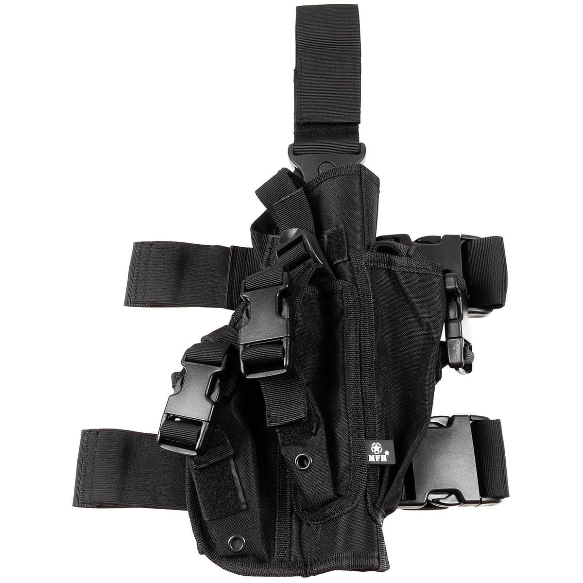 Fondina per pistola da fissare sulla coscia destra. Cinghie regolabili con fibbie FASTEX. Tasche per tre caricatori con copertura. Cinghie elastiche. Materiale: 100% poliestere. Ulteriori informazioni