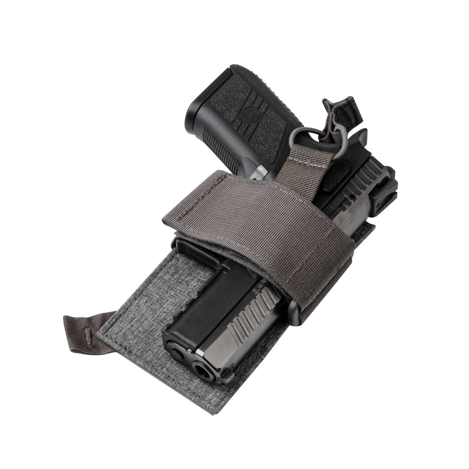 Custodia leggera e versatile progettata per il trasporto di armi di servizio (ad esempio Glock 17, XDM, CZ P07/09, SIG 226, P99) in zaini, borse e borsoni dotati di morbido rivestimento interno. La pistola è fissata nella fondina con una cinghia elastica. L'inserto è progettato principalmente per zaini e borse del marchio HELIKON-TEX come EDC SLING o DOWNTOWN. Per la produzione della fondina è stato utilizzato nylon di alta qualità.