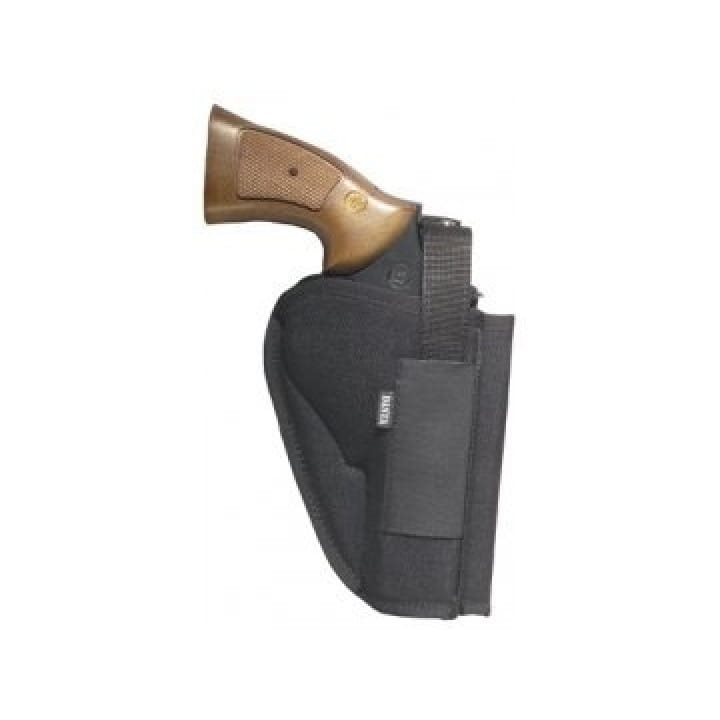 Fondina sagomata da cintura progettata per riporre e trasportare revolver con canna lunga fino a 4". La fondina è realizzata in nylon resistente alle sollecitazioni meccaniche e l'arma è fissata al suo interno tramite una cinghia con chiusura in velcro. La fondina si fissa alla cintura tramite un passante posteriore per cinture larghe fino a 50 mm.