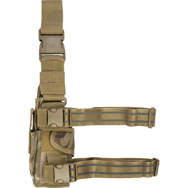 Fondina per pistola per destrimani. Design mimetico all'avanguardia. Chiusura con cinturino dotato di bottone a pressione. Cinghie scorrevoli in velcro per la regolazione in base al tipo di pistola. Cinghie antiscivolo dotate di fibbia FASTEX. Ulteriori informazioni