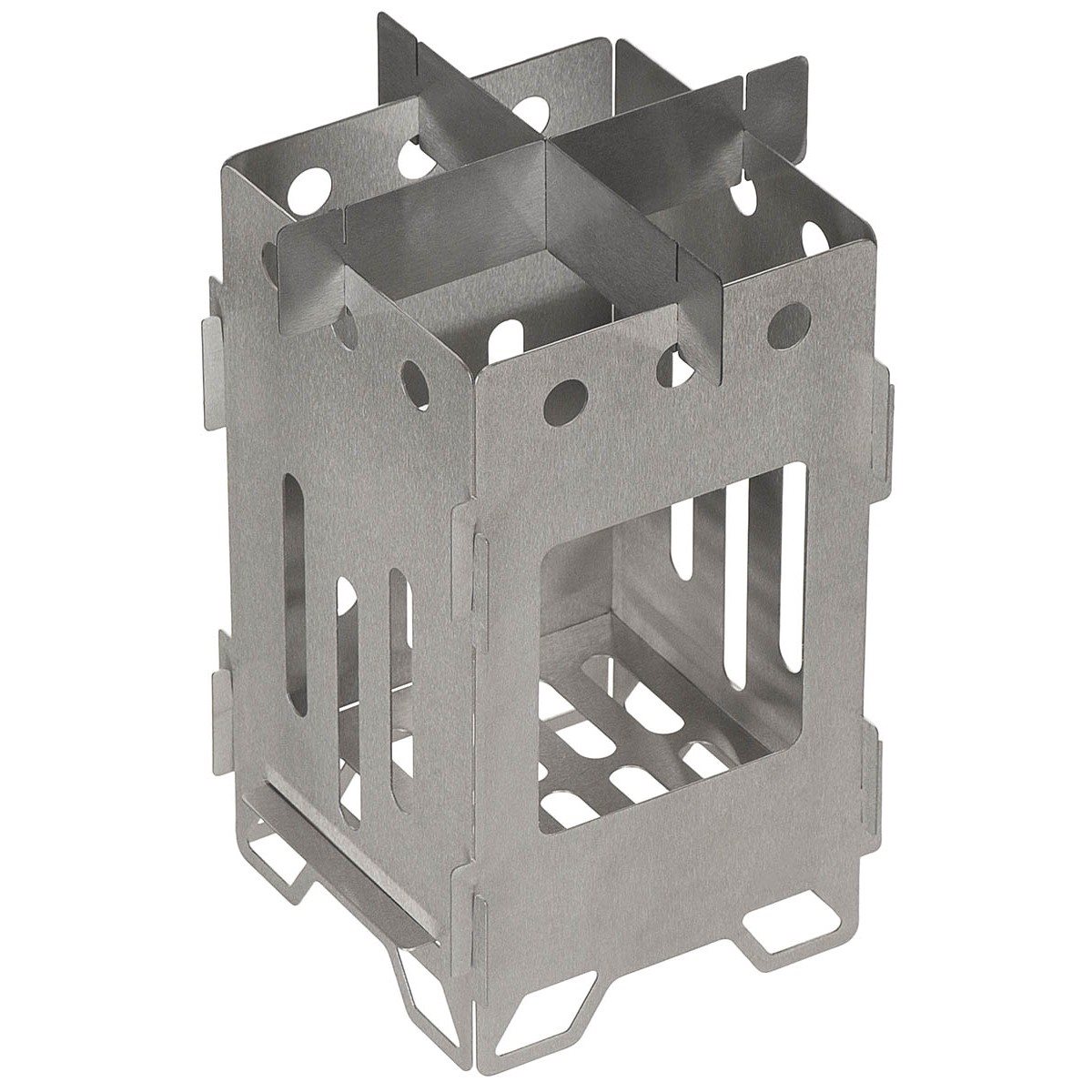 Fornello da campeggio di grandi dimensioni adatto per combustibili solidi. Una volta smontato occupa uno spazio minimo ed è facile e veloce da assemblare. Le pareti del fornello sono perforate in modo da garantire la massima trazione in qualsiasi situazione. Il fornello è dotato di una custodia rigida per un facile trasporto.