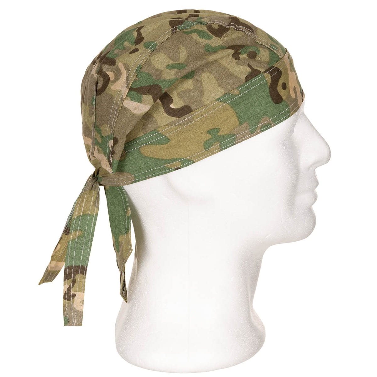 Foulard di tipo headwrap con motivo mimetico OPERATION CAMO. Possibilità di chiusura sul retro con classico nodo. Materiale: 100% cotone.