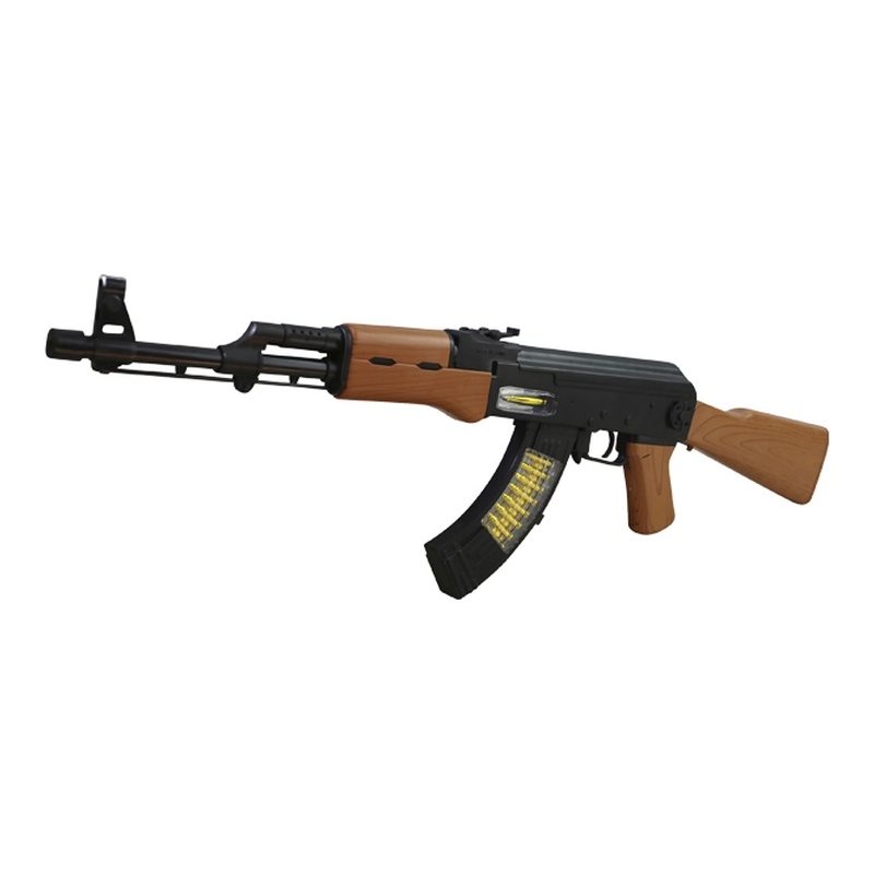 Giocattolo in plastica per bambini ispirato al Kalashnikov - fucile d'assalto AK-47. Non spara proiettili, emette effetti sonori e luminosi e vibra. Lunghezza totale 62 cm. Adatto a bambini dai 3 anni in su. Ulteriori informazioni