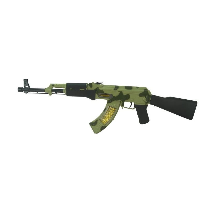 Giocattolo in plastica per bambini ispirato al Kalashnikov - fucile d'assalto AK-47. Non spara proiettili, emette effetti sonori e luminosi e vibra. Lunghezza totale 69 cm. Adatto a bambini dai 3 anni in su. Ulteriori informazioni