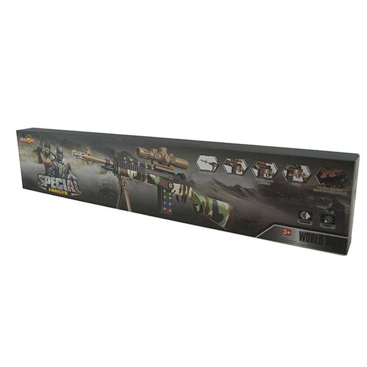 Giocattolo in plastica per bambini. Non spara proiettili, emette effetti sonori. Lunghezza totale 62 cm. Adatto a bambini dai 3 anni in su. Ulteriori informazioni