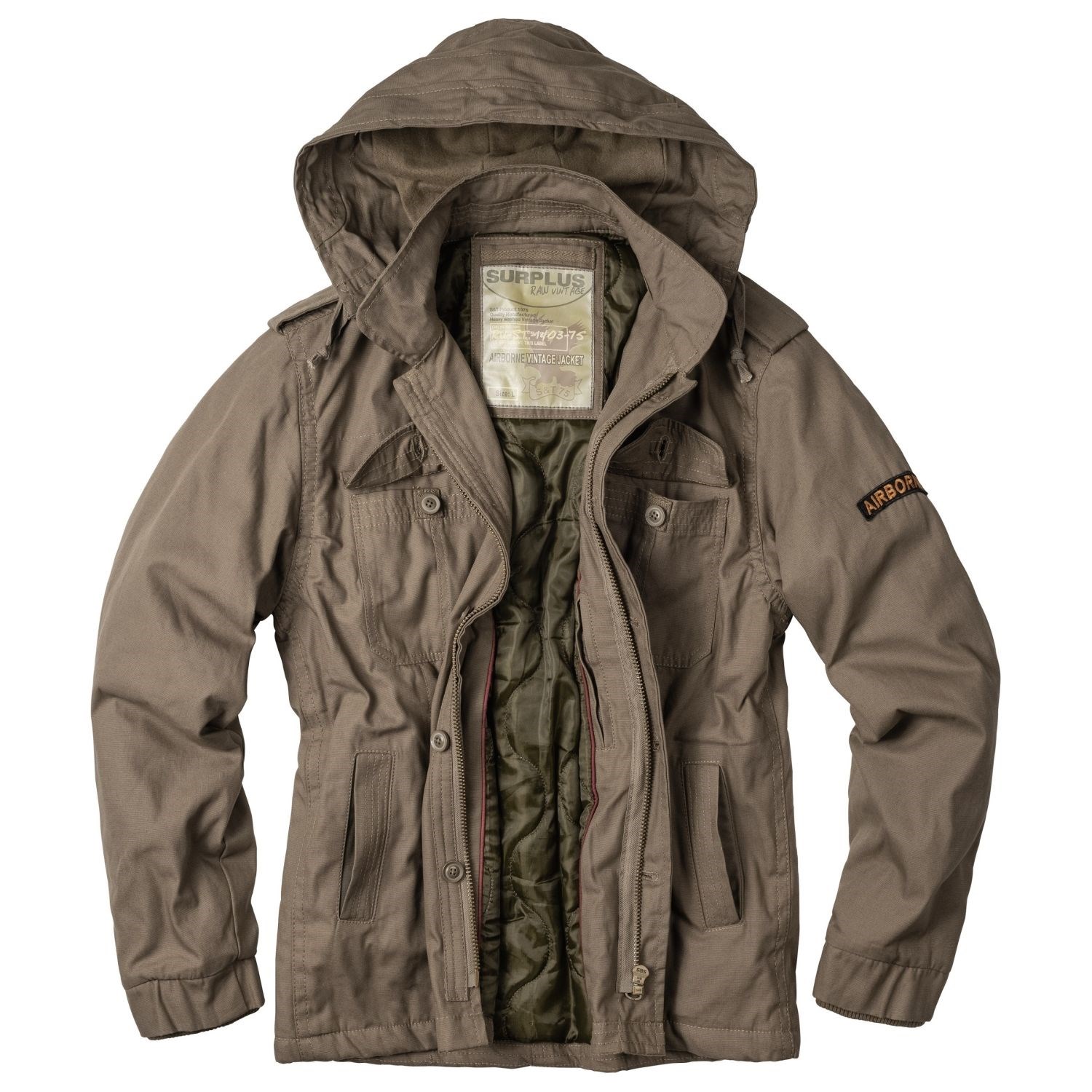 La giacca vintage AIRBORNE è un capo elegante, ideale per i climi più freddi. La giacca è dotata di cappuccio staccabile, cerniera in ottone massiccio e fodera termica. La giacca presenta un totale di sei tasche. Ulteriori informazioni