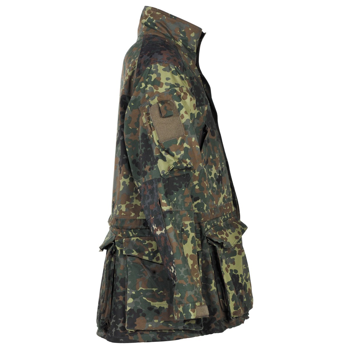 Giacca sofisticata in mimetico tedesco flecktarn, dotata di ampie tasche che offrono un ampio spazio di stivaggio. Girocollo con comoda fodera in pile.