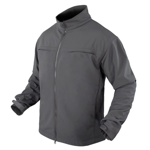 Giacca softshell minimalista con tasche piatte sul petto, pannelli ID nascosti e pannello ID nascosto sul retro.