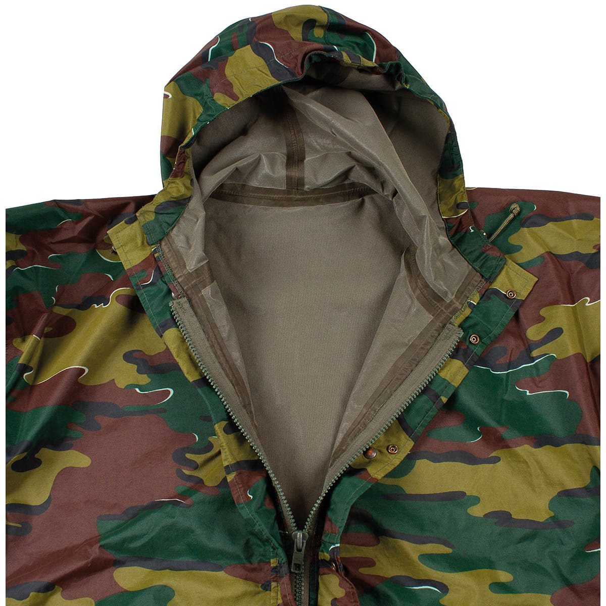 Giacca resistente all'acqua e al vento realizzata in laminato trilaminato con mimetico belga Jigsaw. Si chiude con una cerniera centrale coperta da una patta. La giacca è dotata di una tasca profonda regolabile in base alla taglia. Ulteriori informazioni