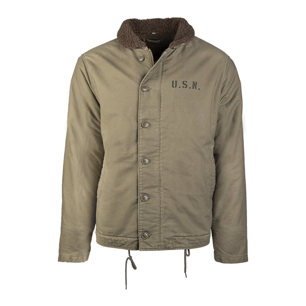 Riproduzione di alta qualità della classica giacca da marinaio americana N1. La giacca si chiude con una cerniera metallica centrale, coperta da una robusta patta con bottoni. Le due tasche anteriori sono sufficientemente capienti per riporre piccoli oggetti e, se necessario, possono contenere senza problemi le mani guantate. Il colletto della giacca è dotato di una calda pelliccia sintetica. La fodera della giacca è morbida al tatto e imbottita. L'orlo inferiore può essere regolato in base alla taglia tramite cordoncini, mentre i polsini delle maniche sono elasticizzati.