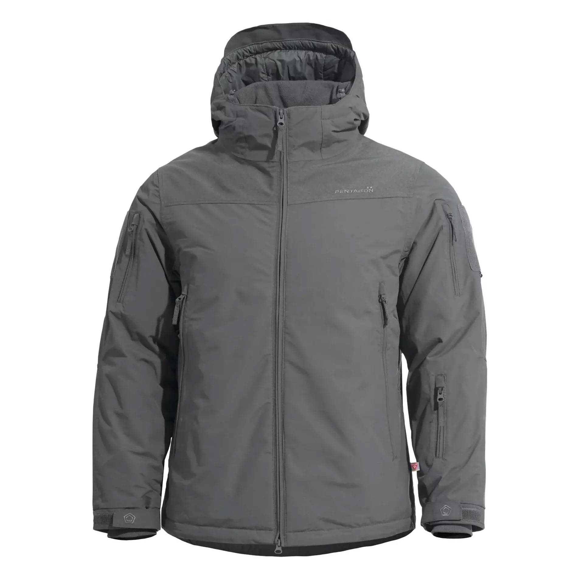 La chiusura è realizzata con una cerniera a doppio cursore con patta antiumidità e antivento. Il collo è rialzato e combinato con un cappuccio profondo, regolabile in tre punti. Le ampie tasche sulle braccia arrivano quasi al centro del petto e sono foderate con un morbido materiale in pile per una maggiore calore. Le due tasche sulle spalle sono combinate con un pannello esterno in velcro per una facile personalizzazione con toppe in velcro. Le tasche interne per oggetti di valore o documenti sono protette da una cerniera. L'ultima tasca per piccoli oggetti si trova sulla manica sinistra. Le maniche sono rifinite con una maglia elastica che impedisce la penetrazione di sporco e aria fredda nella giacca. Naturalmente, l'orlo inferiore della giacca è regolabile.