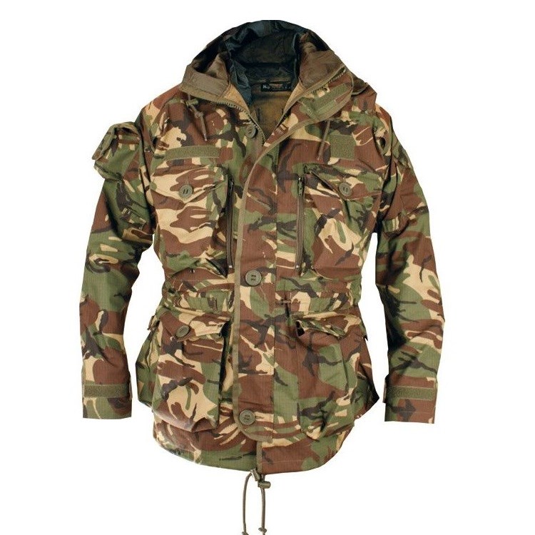 Parka lungo con tasche e cappuccio in stile mimetico britannico DPM.