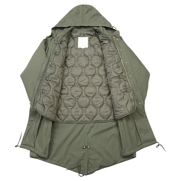 Parka M-51 FISHTAIL, replica del cappotto invernale introdotto dall'esercito americano durante la guerra di Corea. Il parka è stato sviluppato e progettato per le condizioni climatiche più rigide ed è dotato di una calda fodera rimovibile. Il cappotto ha ottenuto il soprannome di FISHTAIL per via della parte posteriore della giacca che, quando è aperta, ricorda la coda di un pesce.