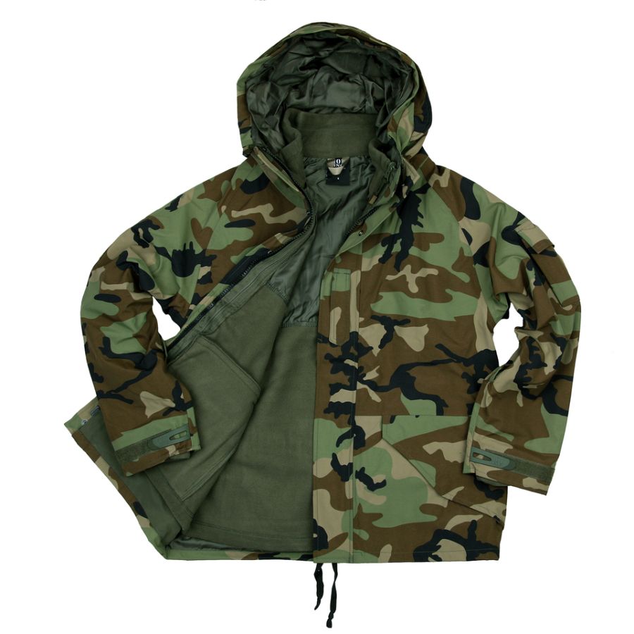 La giacca presenta due tasche piatte per le mani coperte da un risvolto, che è fissato con bottoni a pressione e velcro. Sul bicipite sinistro c'è una tasca più piccola con una piccola tasca interna (ad esempio per una matita). Sopra la tasca c'è un piccolo pannello in velcro (45 x 25 mm), sull'altra manica c'è un pannello in velcro più grande (75 x 55 mm) e sul petto destro c'è un pannello in velcro allungato (135 x 25 mm). mm), sulla seconda manica è presente un pannello in velcro più grande (75 x 55 mm) e sul lato destro del petto è presente un pannello in velcro allungato (135 x 25 mm). La zona soggetta a maggiore usura dell'avambraccio è rinforzata, mentre l'estremità delle maniche può essere regolata la larghezza tramite nastri in velcro. Sotto le ascelle è presente una cerniera di ventilazione a doppio senso, che consente di ventilare e rinfrescarsi in caso di necessità. Il cappuccio rigido è regolabile tramite un cordoncino, che è fissato all'estremità con un cursore in plastica. Il cappuccio è piuttosto profondo e nella parte centrale presenta una visiera morbida cucita per una maggiore protezione del viso. La giacca è piuttosto ampia, nella parte inferiore presenta una striscia di tessuto per un migliore mantenimento del calore e del comfort. protezione del viso. La giacca è piuttosto ampia e nella parte inferiore presenta una fascia di tessuto (gonna) che può essere regolata con un cordino elastico terminante con un elastico e chiusura a bottoni automatici per garantire maggiore calore e comfort. In questo modo non entrerà aria nella giacca dal basso. La giacca si chiude con una robusta cerniera a doppio cursore, coperta da un risvolto con bottoni a pressione. Sul risvolto è presente una cintura su cui è possibile applicare il grado.