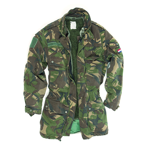 Parka mimetico olandese con fodera - usato • chiusura con cerniera coperta da patta • quattro ampie tasche con patta sul davanti, una tasca sulla manica • due chiusure in velcro per etichette identificative • lacci in vita e sul bordo inferiore della Ulteriori informazioni