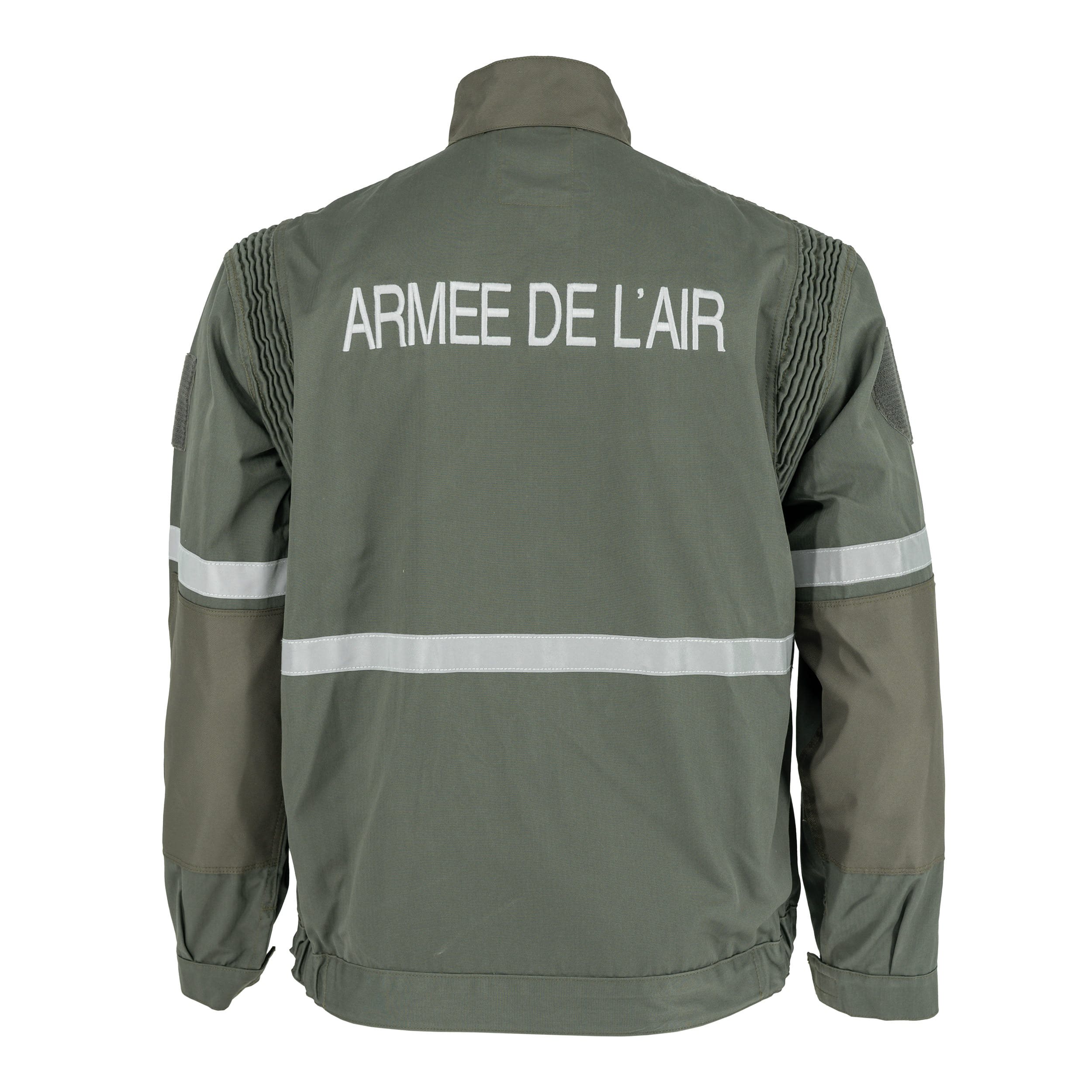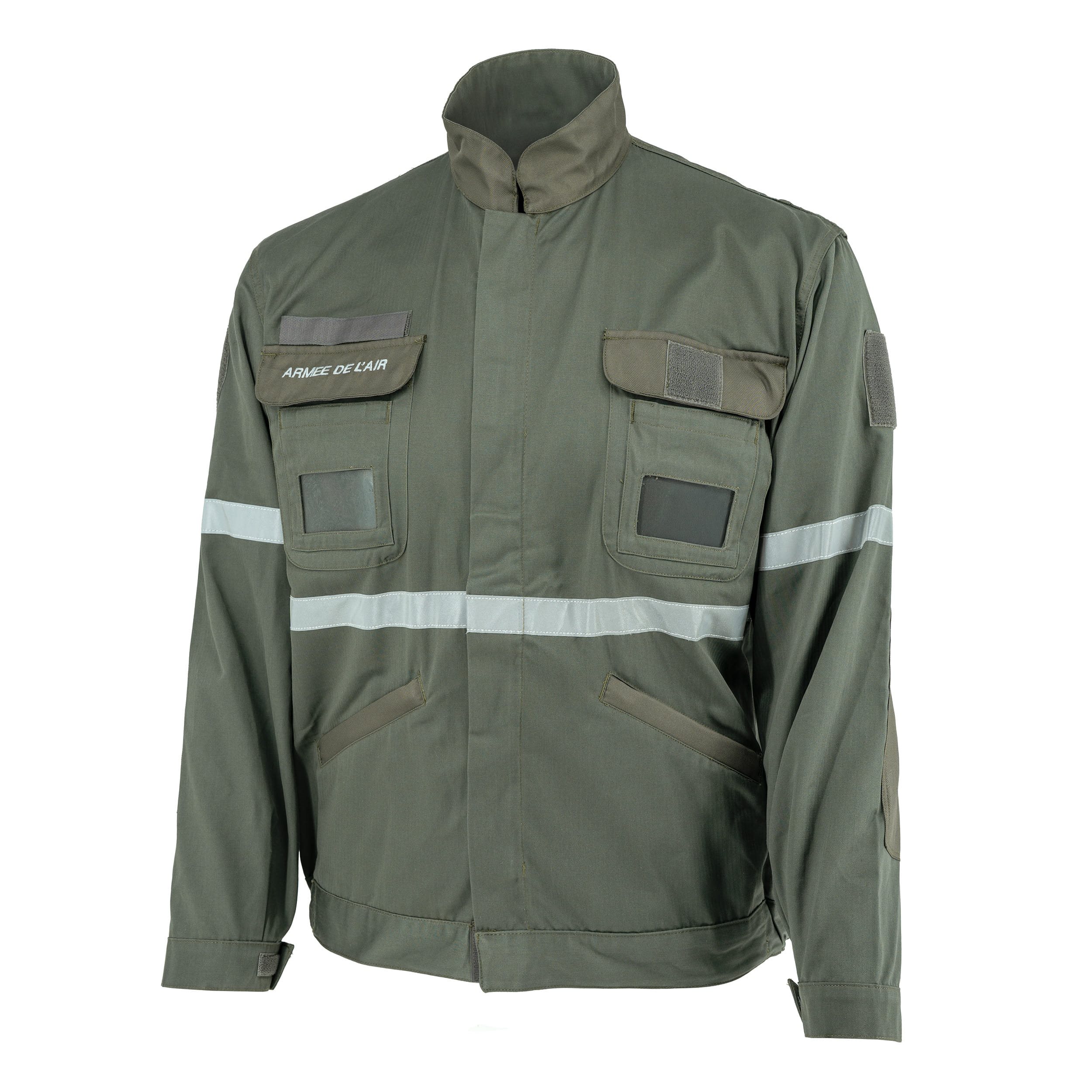 Giacca corta per meccanico aeronautico dell'esercito francese con scritta ARMEE DEL'AIR ricamata sul retro e sulla patta della tasca anteriore destra. Strisce riflettenti.
