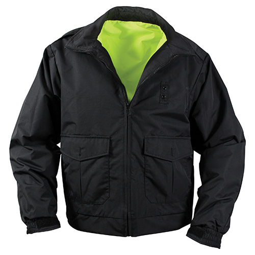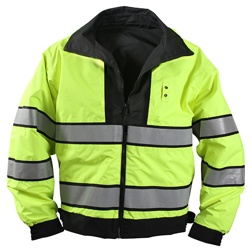 Giacca da lavoro caratterizzata da ampie strisce riflettenti, altamente visibili al buio quando illuminate da una fonte di luce. La giacca è reversibile e disponibile in nero o giallo. Materiale: nylon Taslon 320d. Ulteriori informazioni