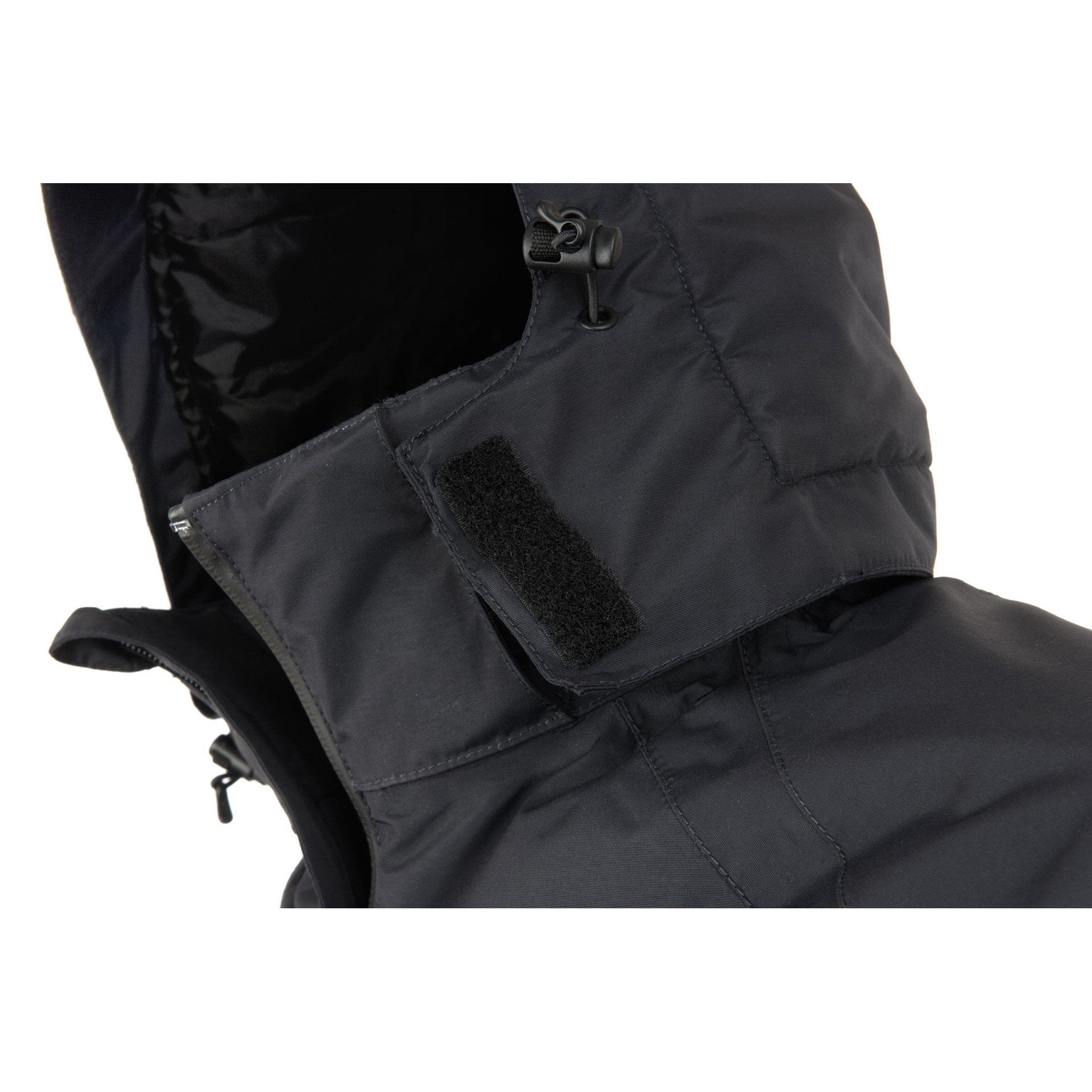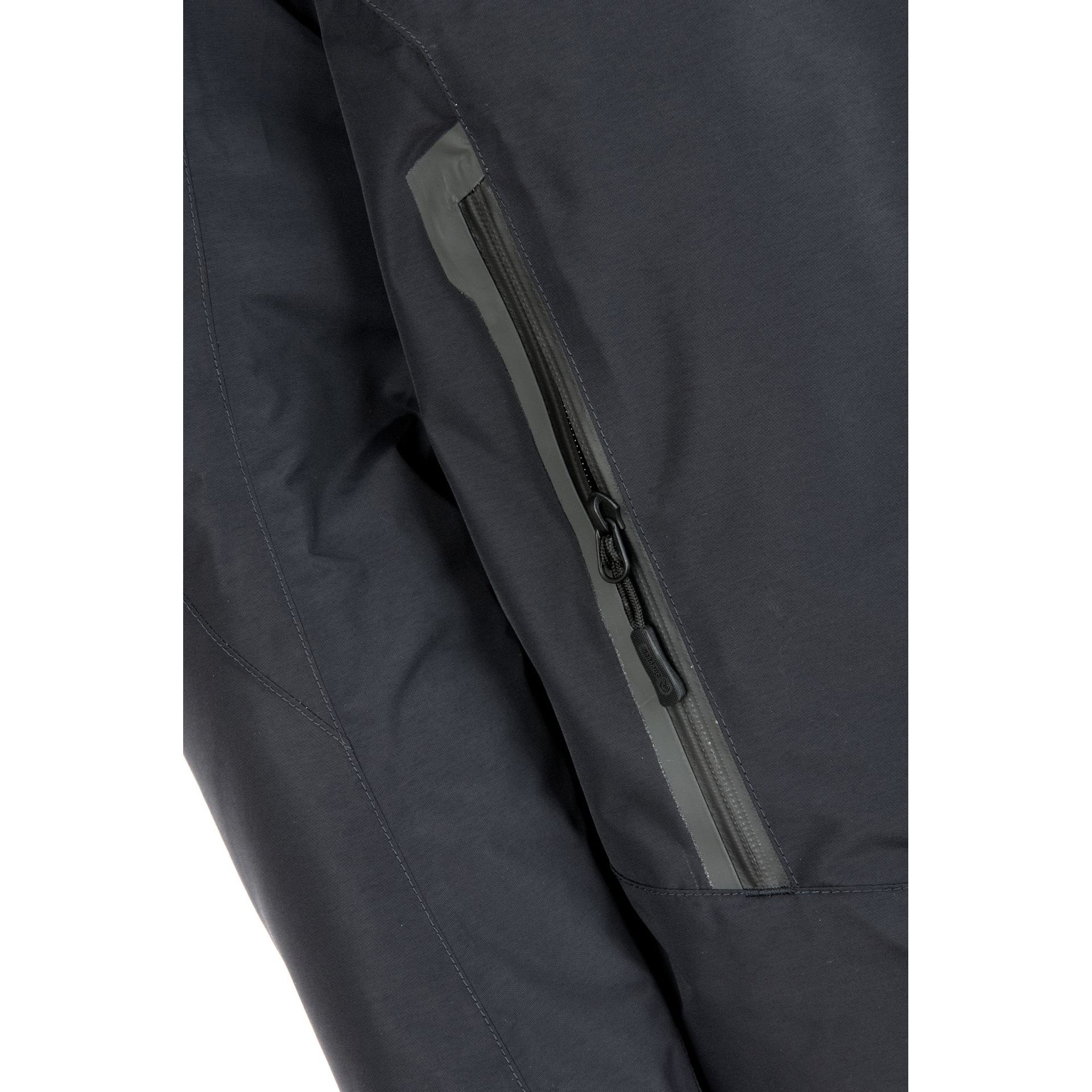 La chiusura della giacca è costituita da una cerniera YKK® a doppio cursore, impermeabile e antivento, che termina nel colletto a stecca con una protezione per il collo e la barba. Il colletto è dotato di un cappuccio rimovibile e imbottito, regolabile in larghezza. In vita troverete due profonde tasche per le mani con fodera termica. Le tasche sono sufficientemente capienti per le mani con i guanti o per riporre piccoli oggetti e oggetti di valore. Troverete anche una tasca più piccola all'interno della giacca. L'orlo inferiore della giacca può essere stretto tramite un cordino elastico, mentre i polsini delle maniche possono essere regolati tramite VELCRO.