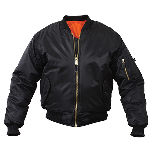 Giacca da pilota classica impermeabile tipo MA-1 (bomber). Questo modello è stato introdotto nell'equipaggiamento dell'aeronautica militare statunitense a metà degli anni '50 e ha mantenuto la sua popolarità fino ad oggi. La giacca è imbottita ed è adatta alle temperature più rigide. È possibile capovolgerla, con la fodera arancione segnaletica all'esterno, ottenendo così un colore riflettente e ben visibile per le situazioni di emergenza.