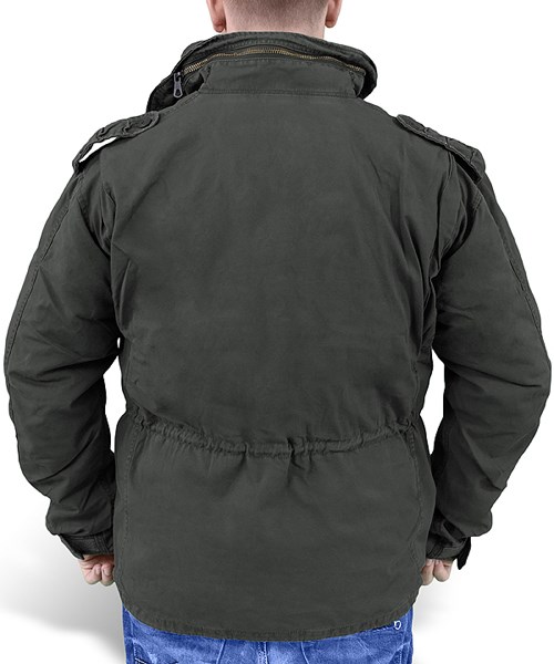 La leggendaria giacca classica dell'esercito americano (modello del 1965) in versione moderna. La giacca Surplus M65 Regiment offre lo stesso comfort del taglio collaudato, la praticità della chiusura, le ampie tasche e il cappuccio nel colletto, a differenza della versione originale, è dotata di un'imbottitura rimovibile in pelliccia sintetica e realizzata in cotone piacevole con patina (aspetto leggermente lavato in fabbrica). L'autenticità è sottolineata dalla cucitura di due finte lacerazioni nella parte anteriore della tasca superiore destra e all'estremità della manica sinistra, nonché dalle ombre create artificialmente dai rinforzi apparentemente strappati.
