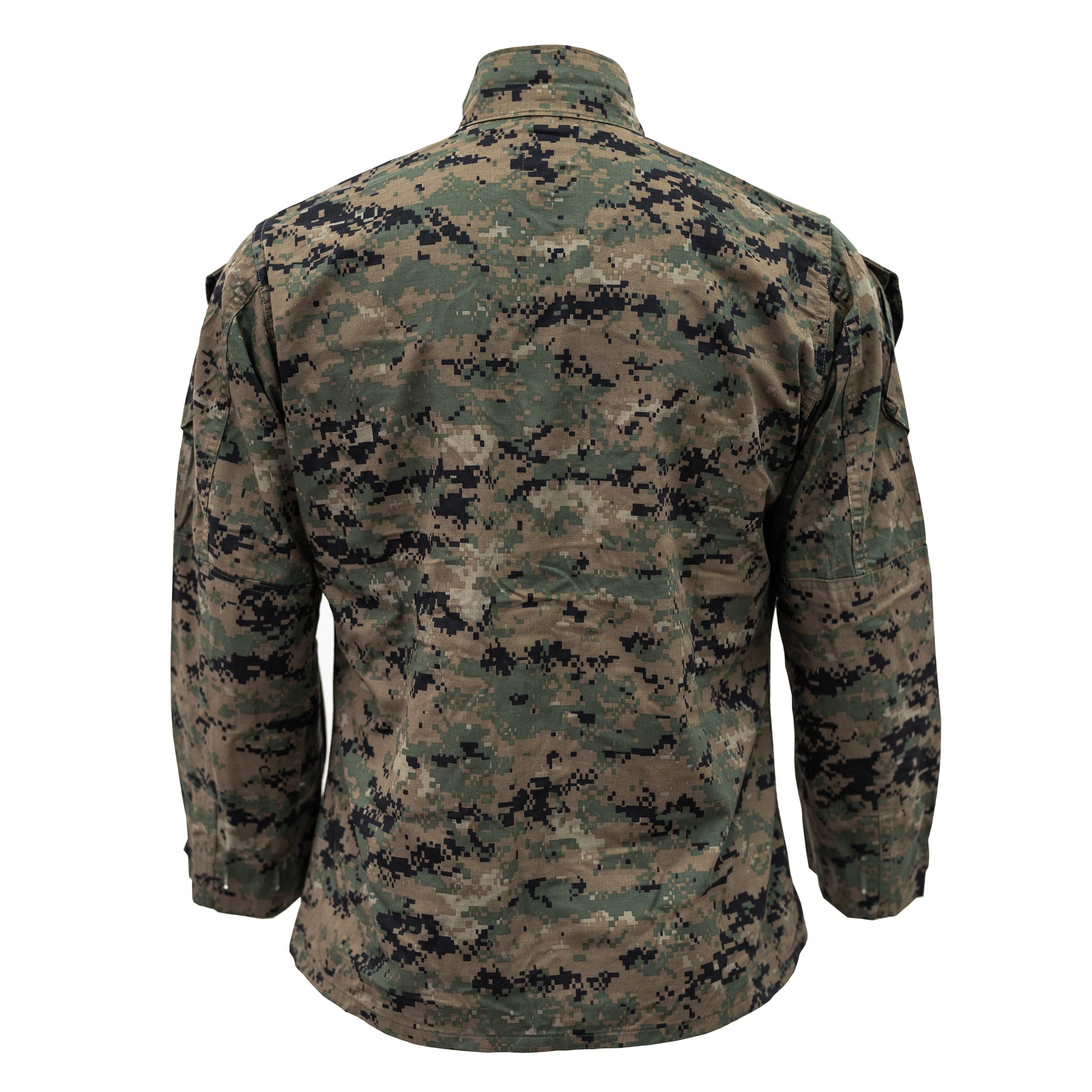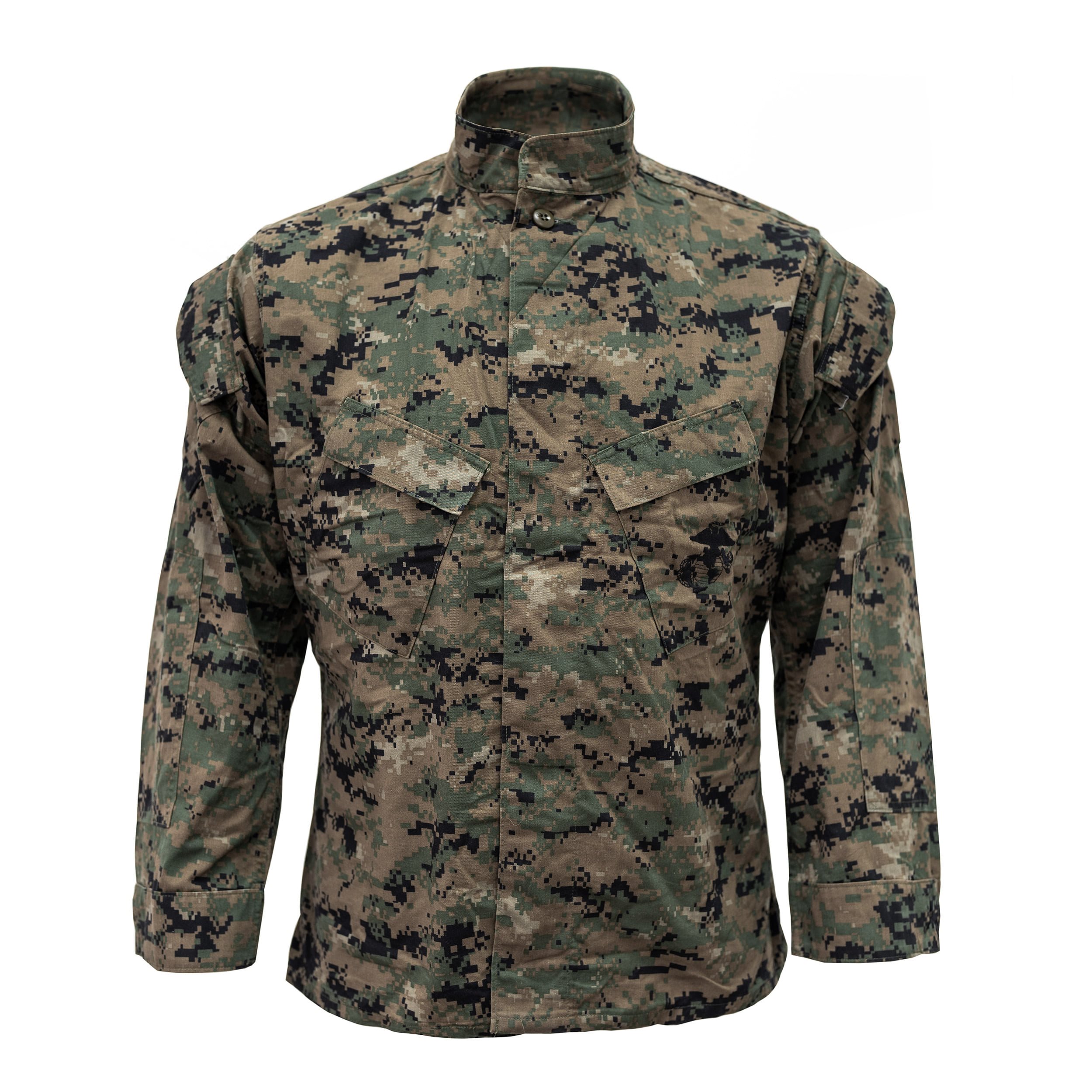 Giacca originale del Corpo dei Marines degli Stati Uniti (United States Marine Corps) realizzata in mimetico MARPAT. La giacca è dotata di bottoni e di quattro tasche per riporre l'equipaggiamento essenziale. Due tasche sono posizionate sulle spalle e due sul petto. I polsini delle maniche sono regolabili tramite cinturini con bottoni. I gomiti sono rinforzati con un doppio strato di tessuto.