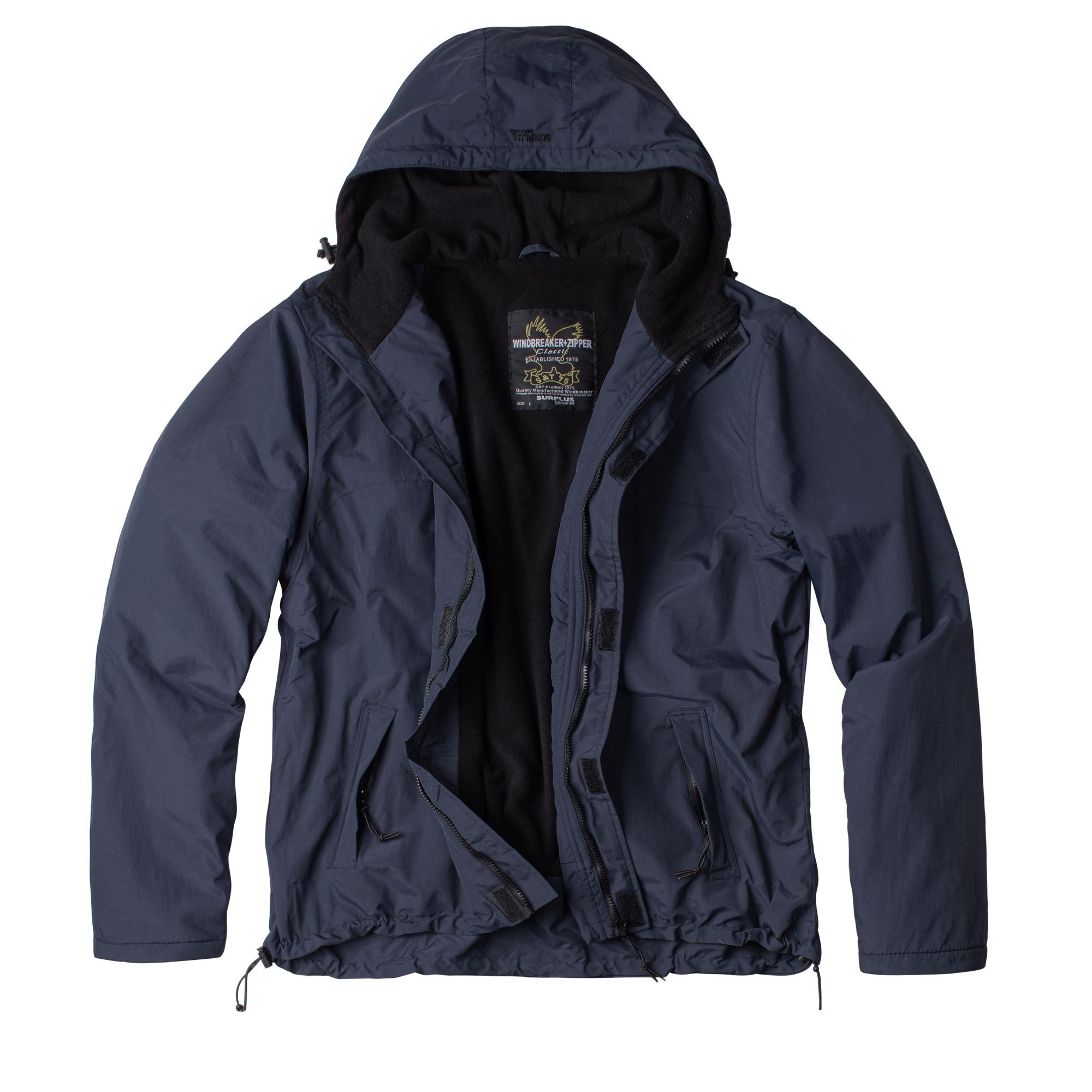Giacca leggera, traspirante e impermeabile grazie al rivestimento in nylon. Ideale per condizioni climatiche avverse. Il cappuccio è regolabile con cordino, le maniche possono essere regolate con velcro. La giacca a vento presenta due tasche standard e chiusura con zip.